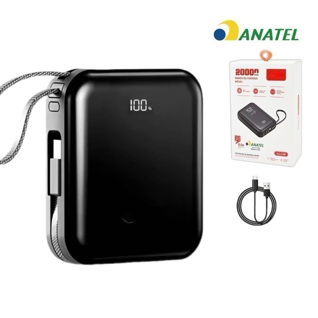 Mini power bank portátil 20.000 mAh com IOS e cabo Tipo C