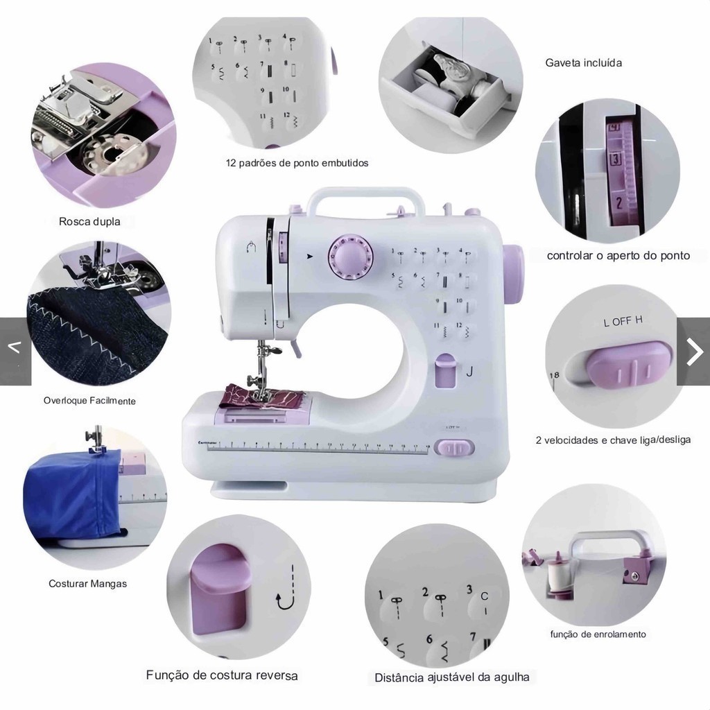 Mini Máquina De Costura Multifuncional Doméstica Composta de 12 Pontos