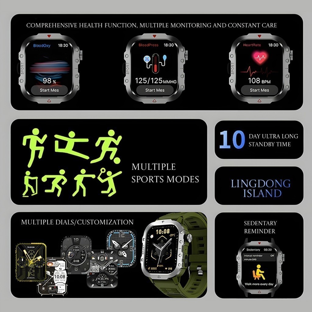 Relógio masculino novo de 2,01 polegadas com bluetooth e funções completas