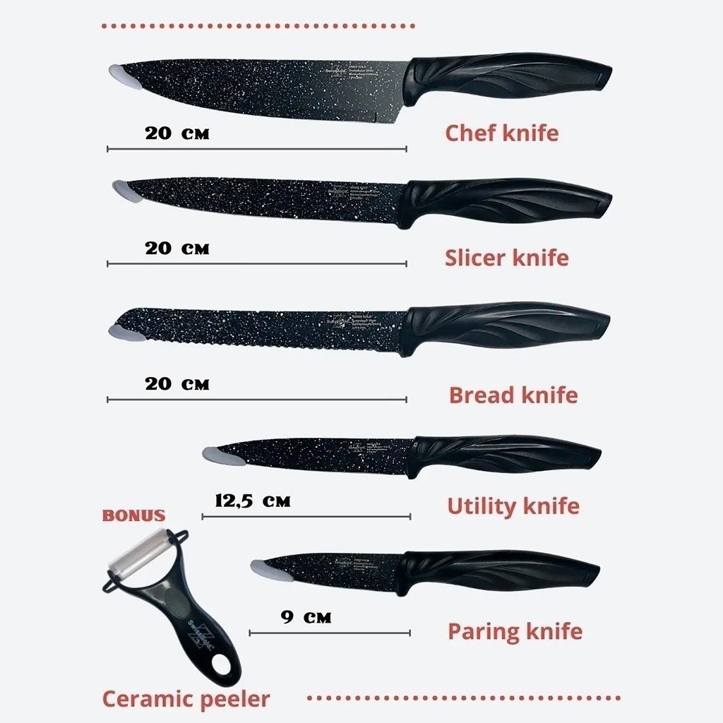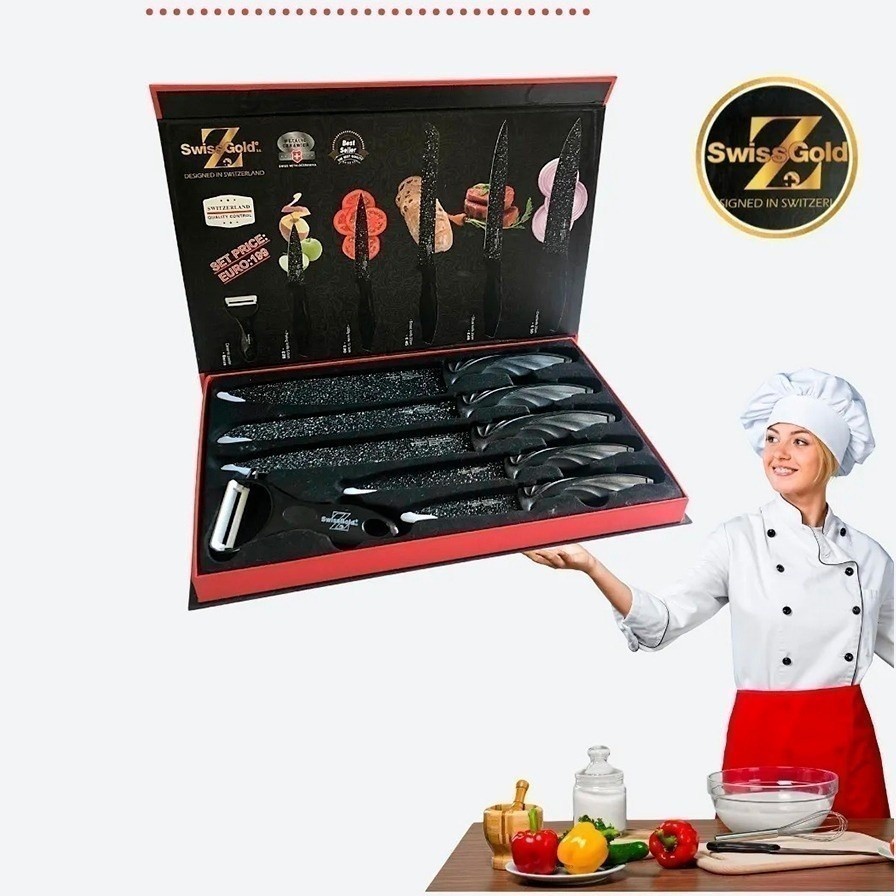 Jogo Faca Com 6 Peças Antiaderente Faqueiro Gourmet Cozinha Completo