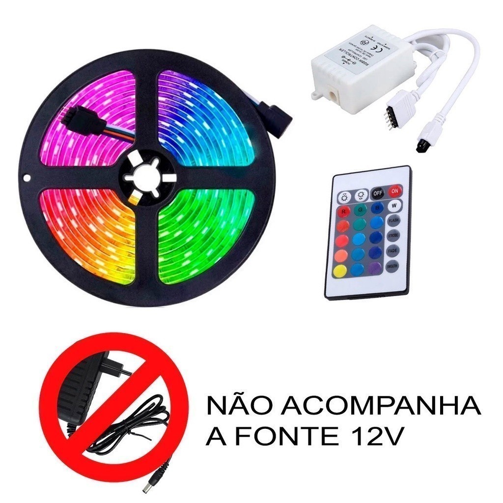 Fita Led Rgb 3528 5m 300 Leds À Prova D'água + Controle Decoração Sanca - Super Led JorgeStore