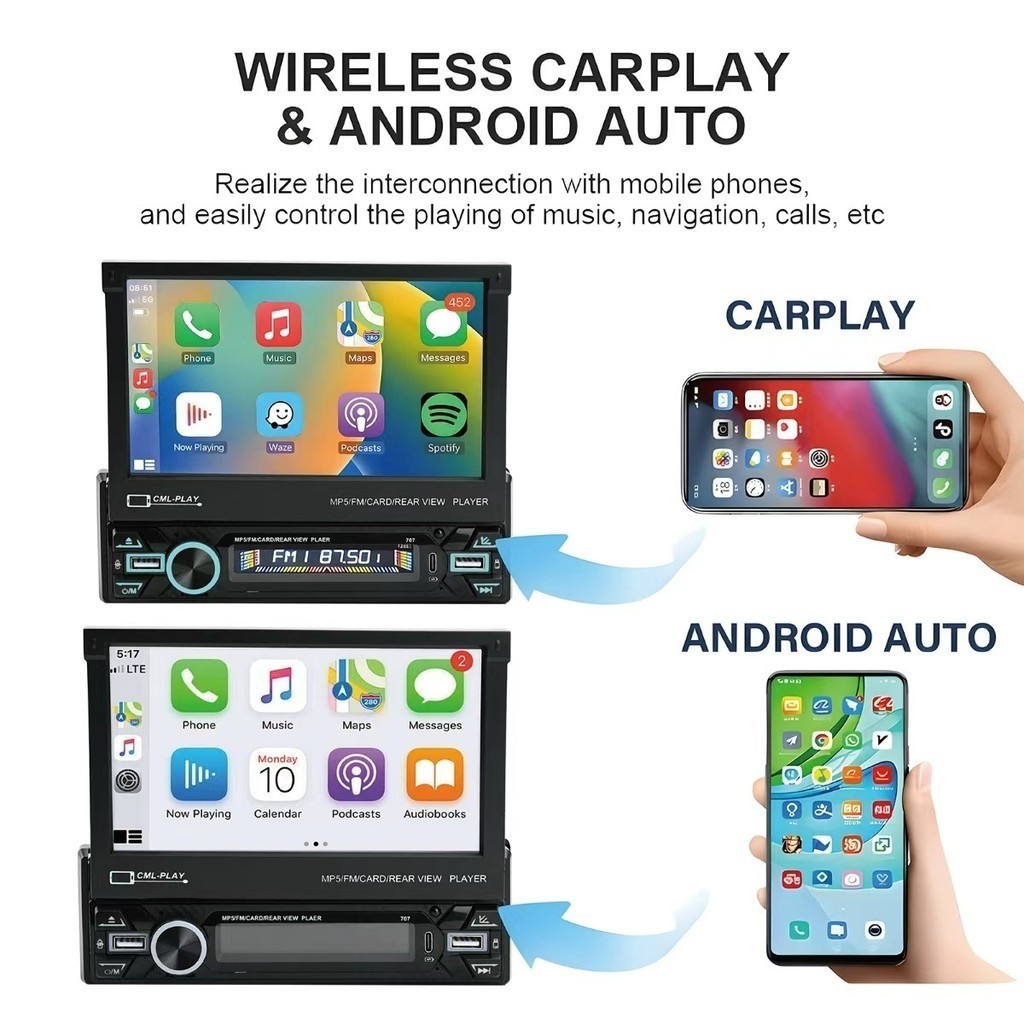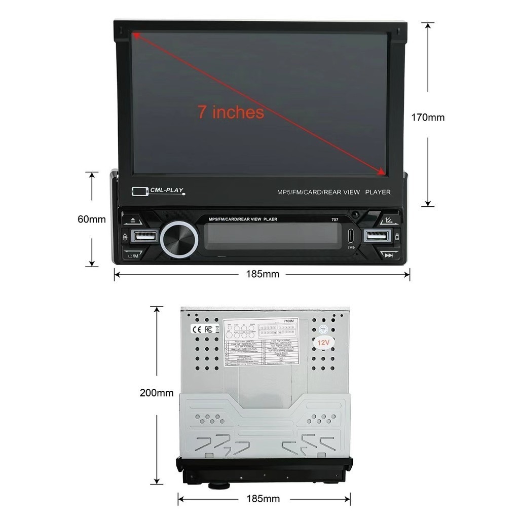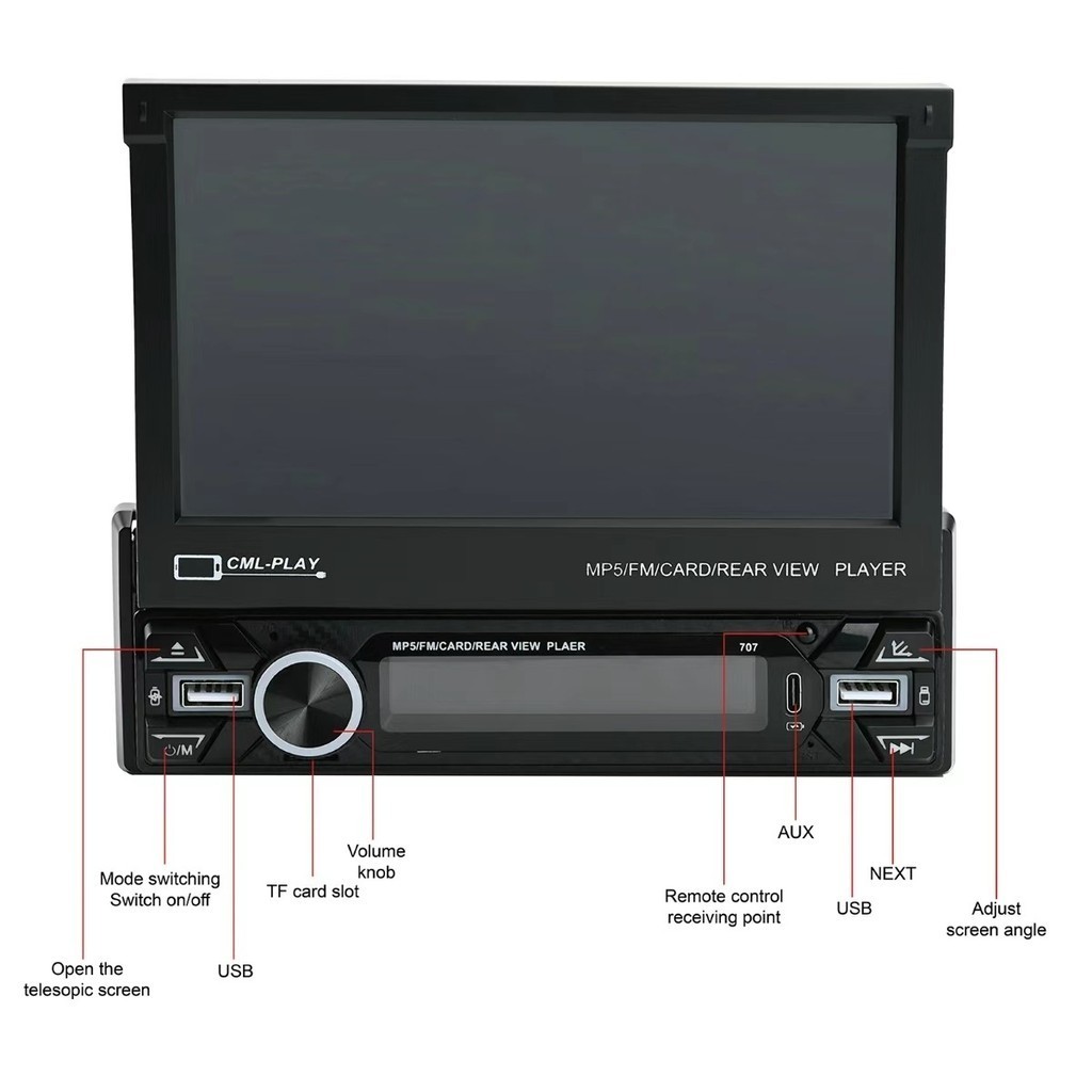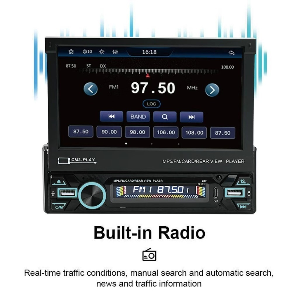 Central Multimídia 1 DIN 7” Retrátil Bluetooth GPS USB Câmera de Ré MP5 CarPlay jorge