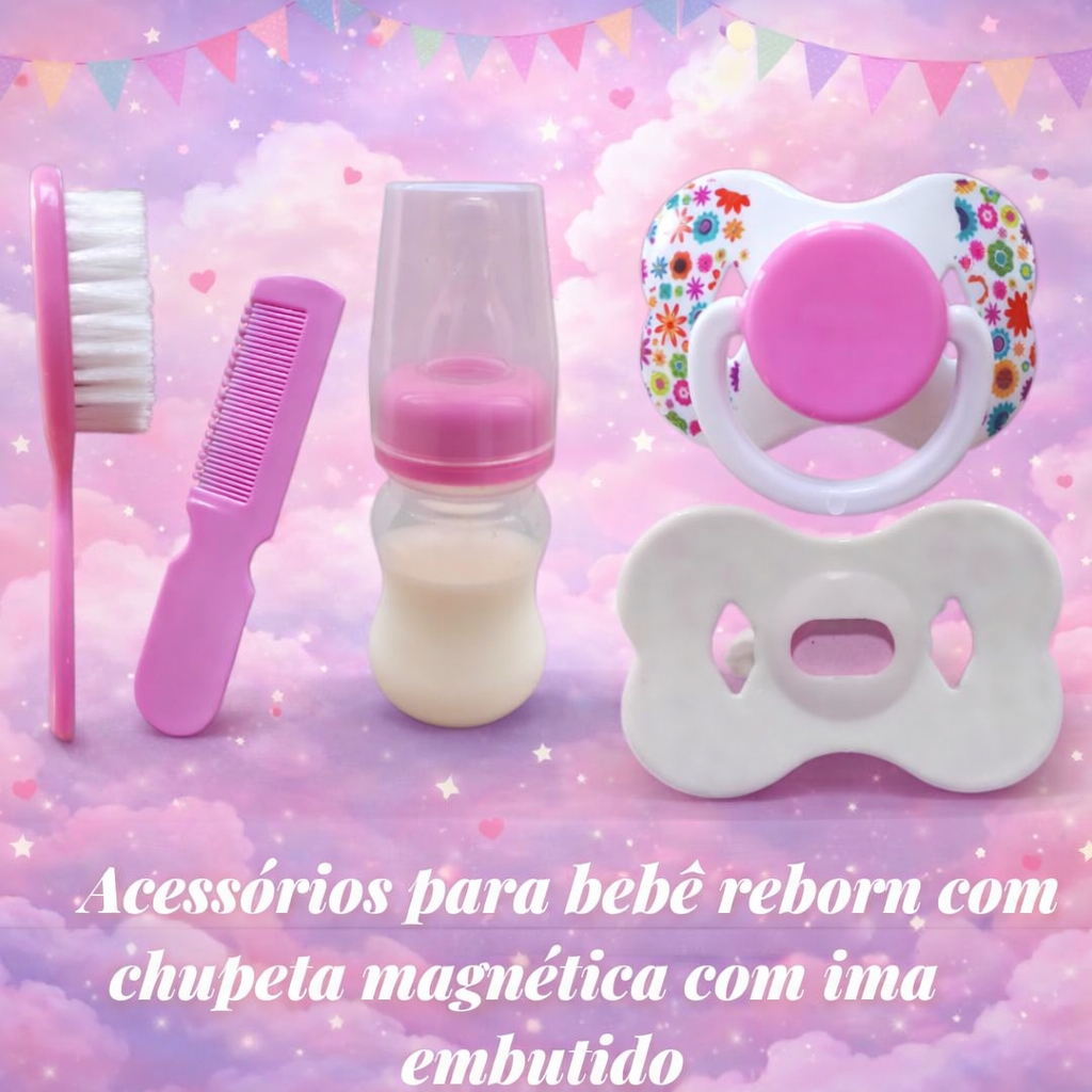 Acessórios Bebê Reborn Chupeta Magnética Escova Pente Mamadeira