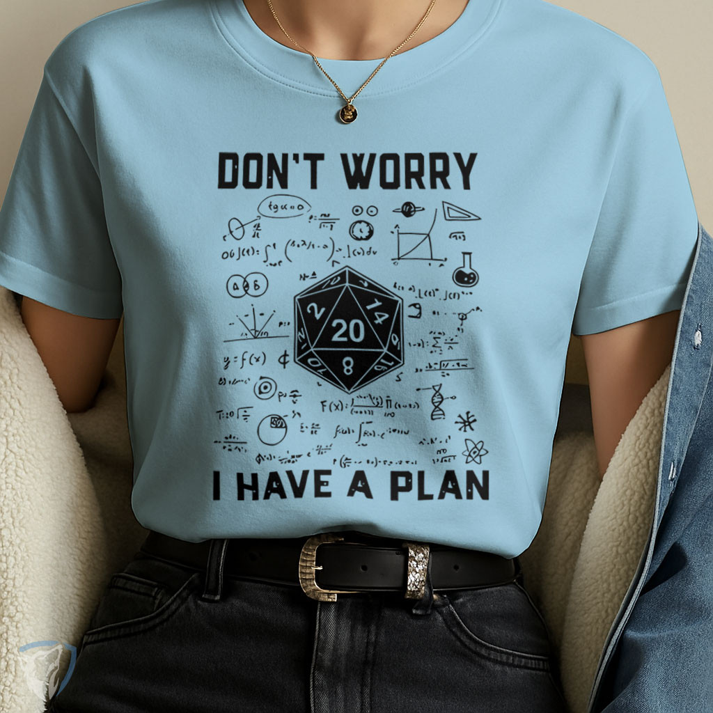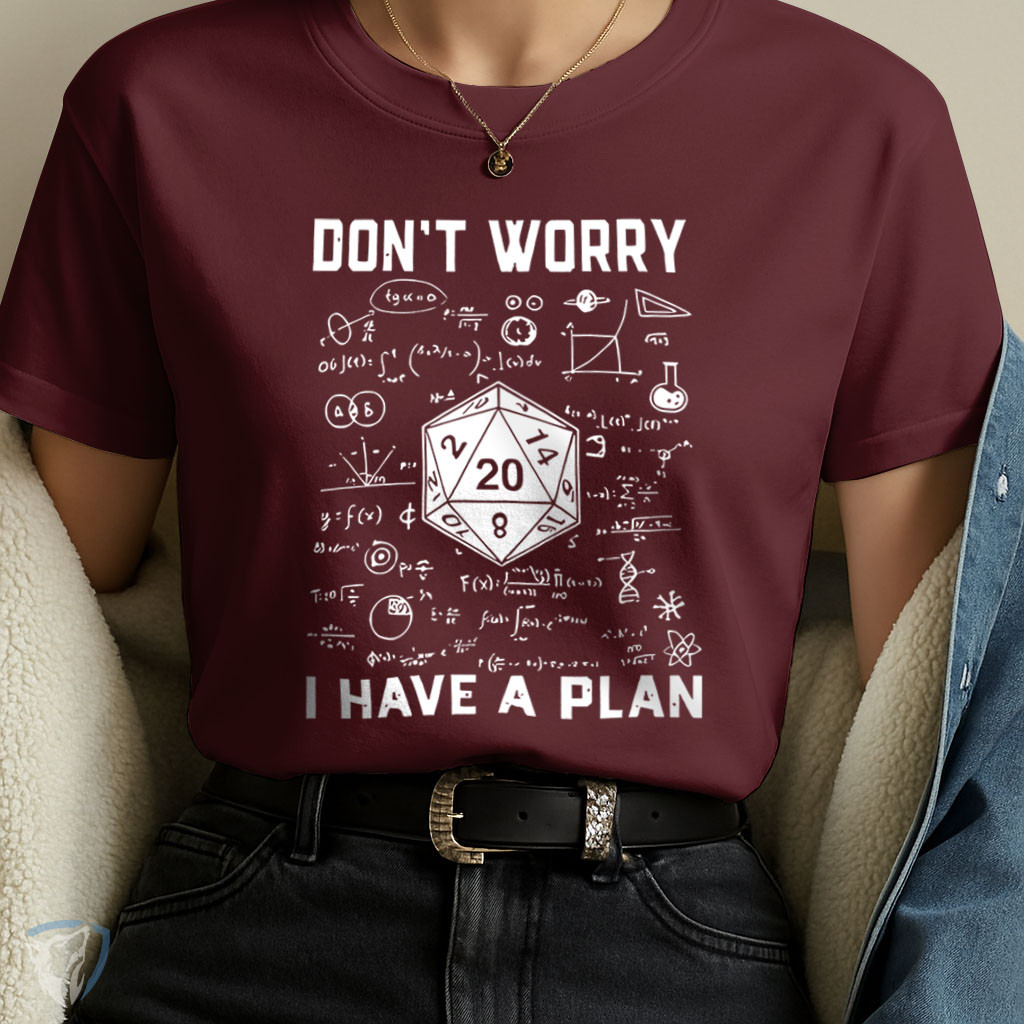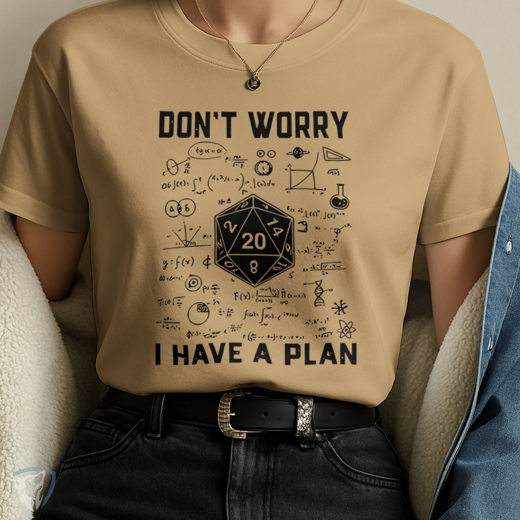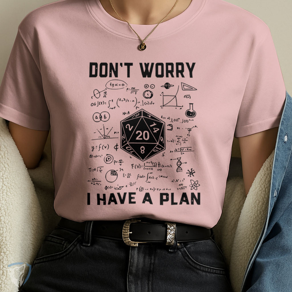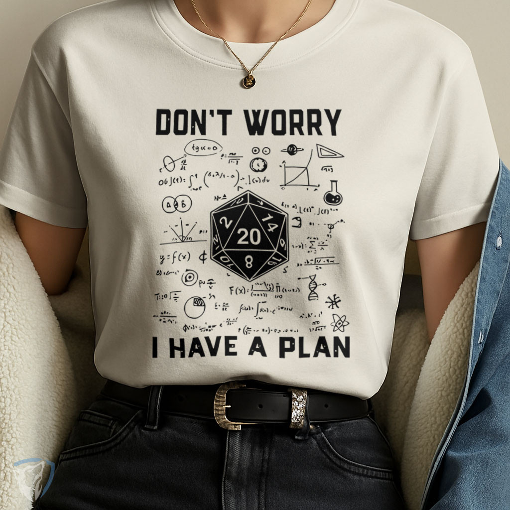 Camiseta RPG Estampada | Dado D20 Don’t Worry I Have a Plan Estilo Geek