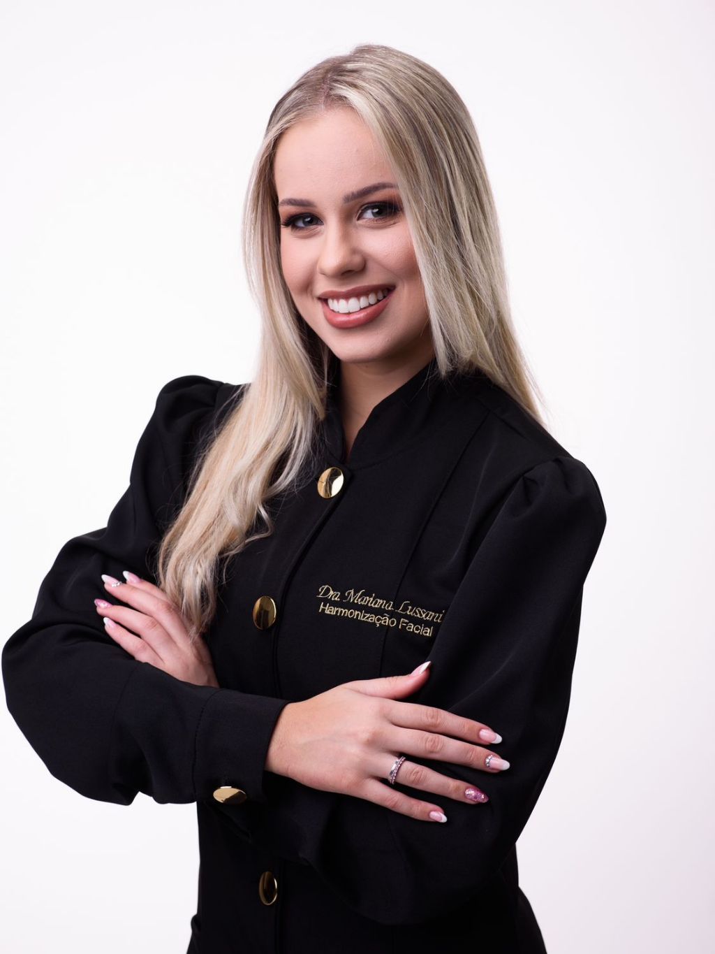 Jaleco feminino com logo + faixa de cabelo bordada