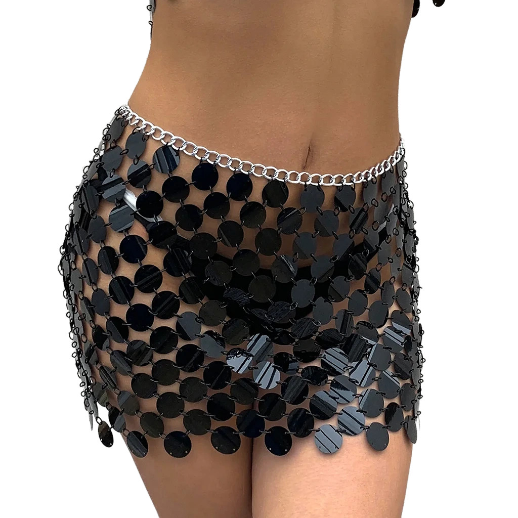 Saia Espelhada Paête Discos Em Lantejoulas Metalizado