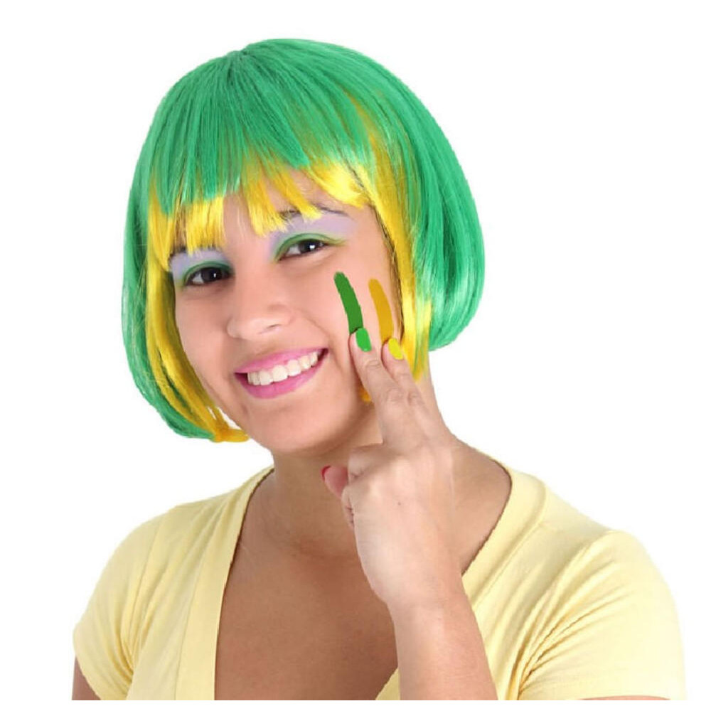 Peruca Curta Verde Amarela Brasil Para Torcida Copa Carnaval