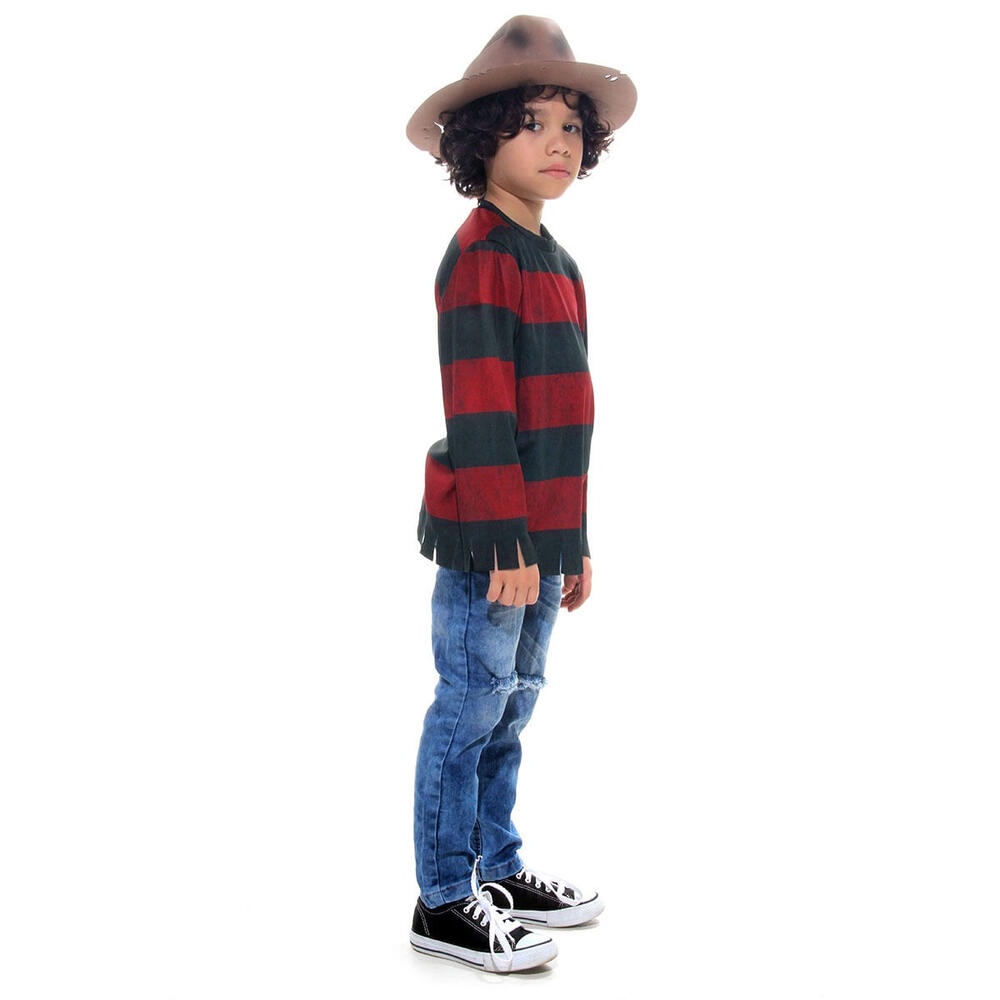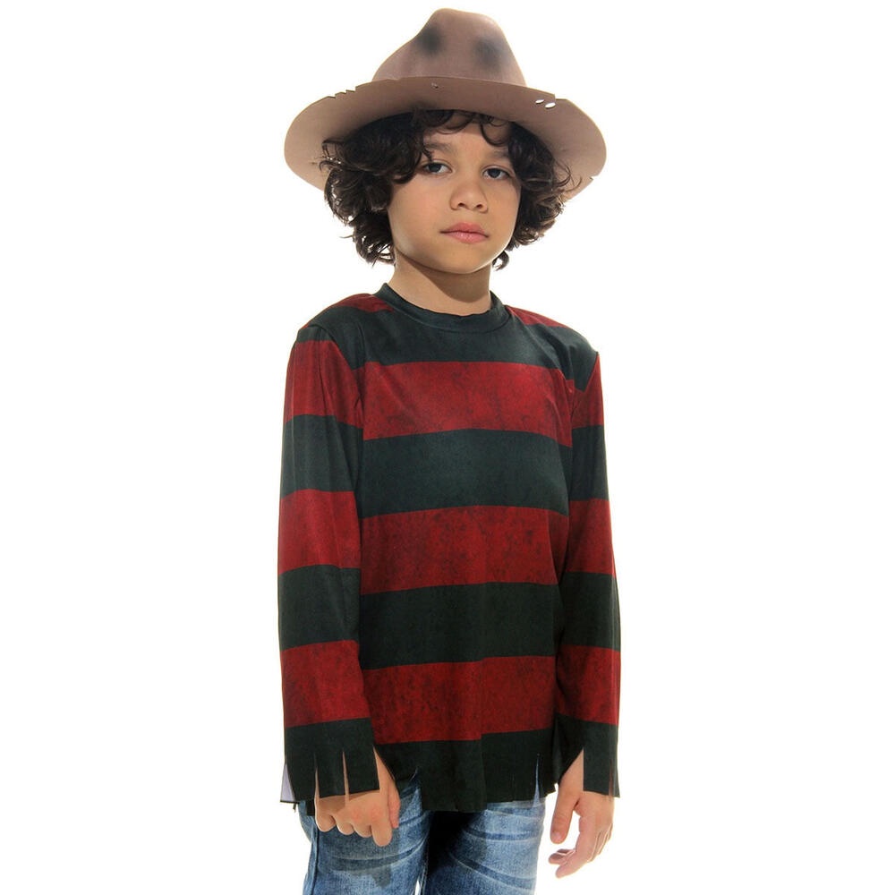 Fantasia Freddy Krueguer Infantil Camisa E Chapéu Halloween