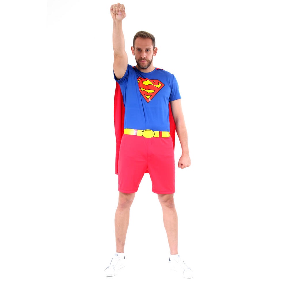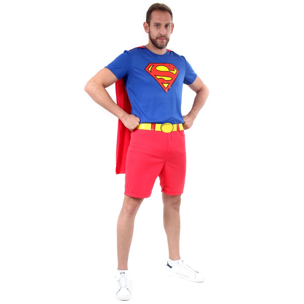 Fantasia Adulto Super Homem Macacão Curto Com Capa Cinto Dc