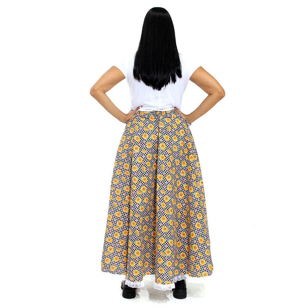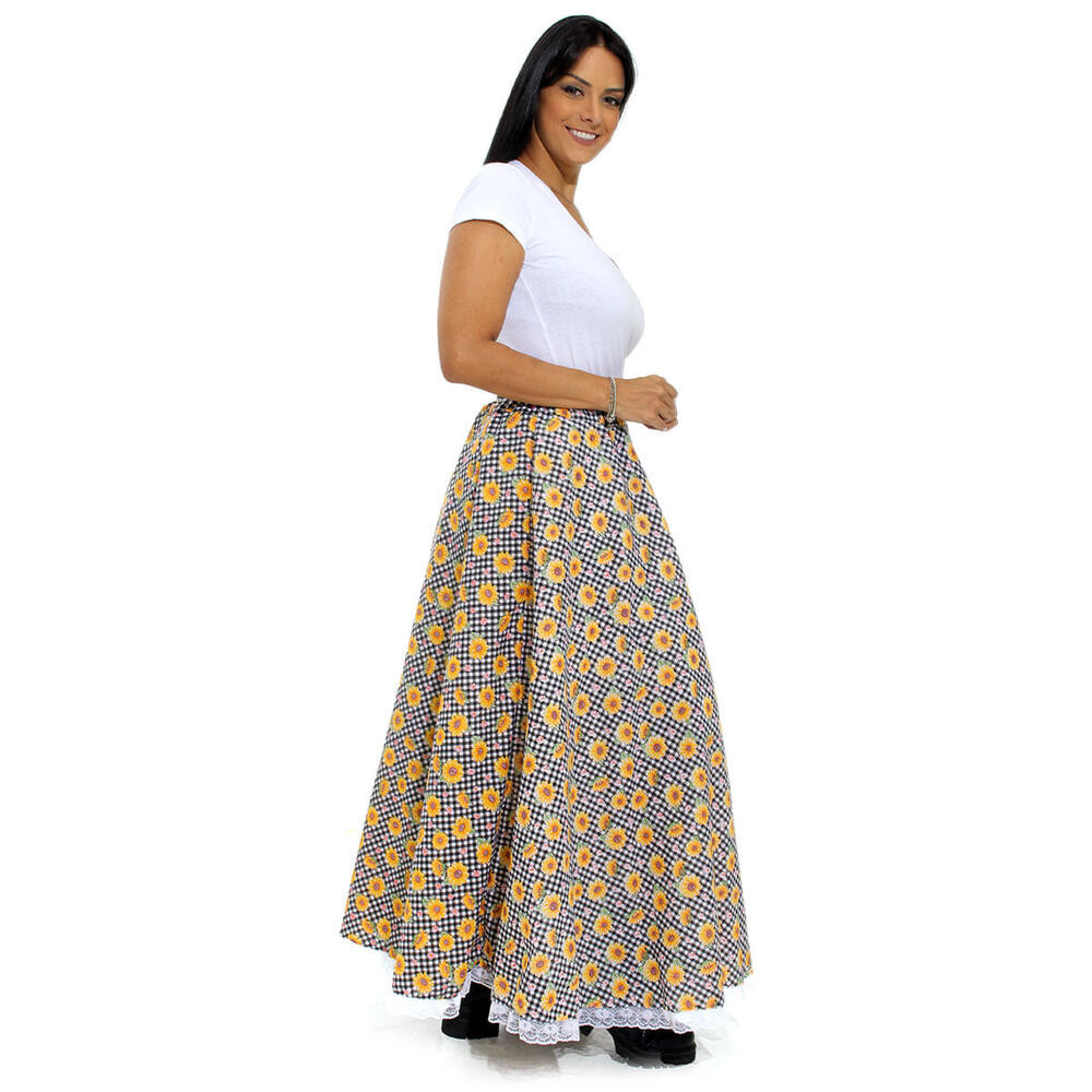 Saia Festa Junina Carimbó Longa Adulto Xadrez Com Girassois