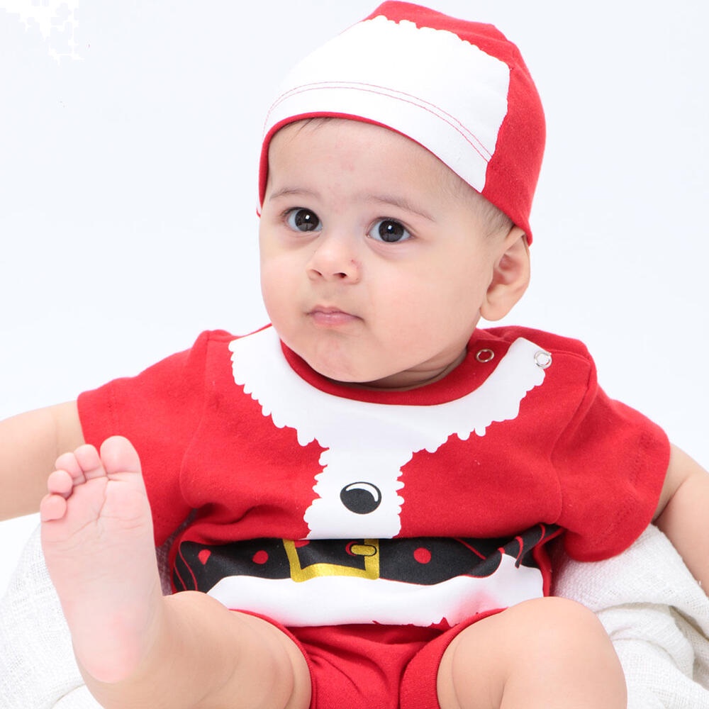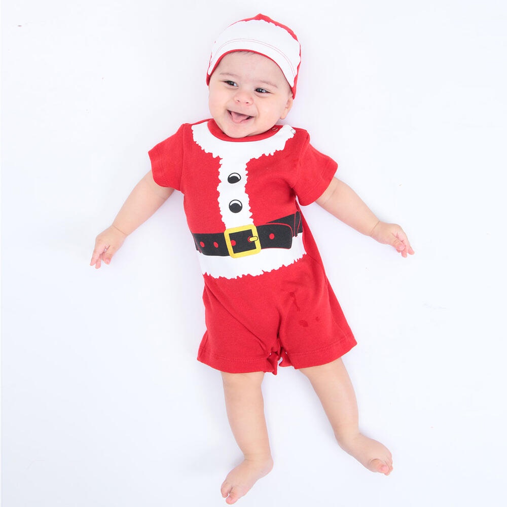 Fantasia Body Macaquinho Bebê Papai Noel Com Touca - Natal