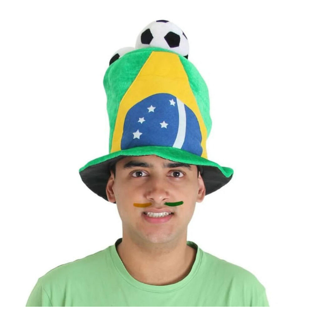 Chapéu Brasil Cartola Com 3 Bolas De Futebol Acessório Para Copa