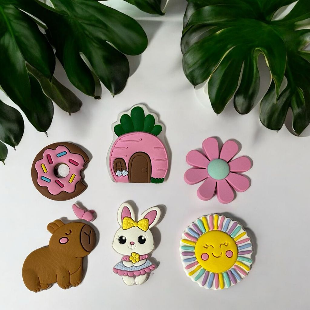 Kit Botons Pins Personalizados Para Babuche Acessorios Enfeite kit 4/5/6/7/8 Flores Enfermagem Boiadeira Animais Aranha
