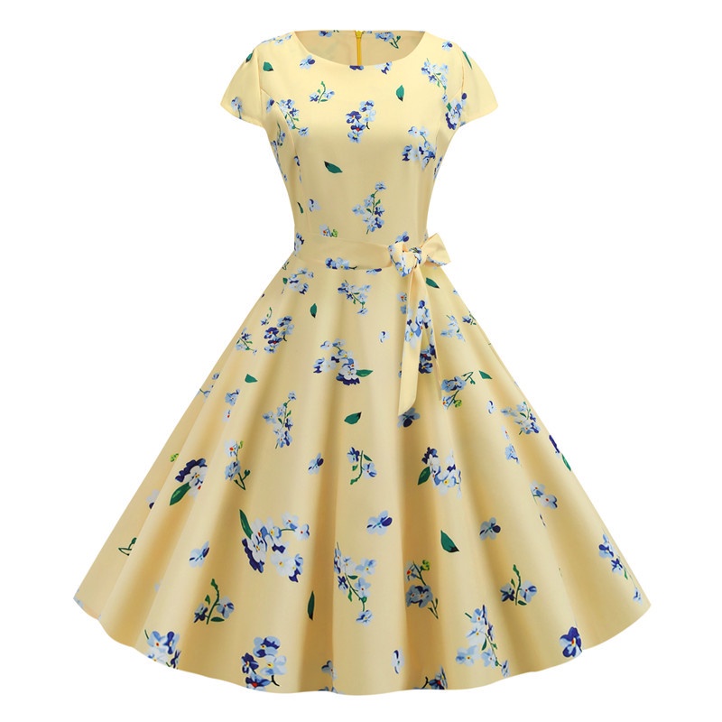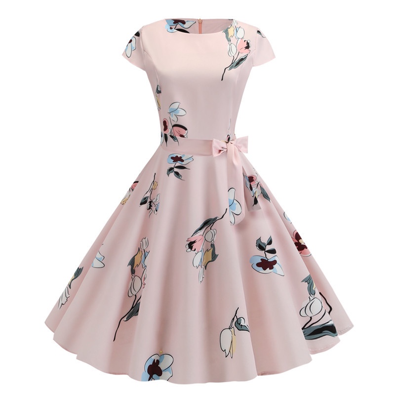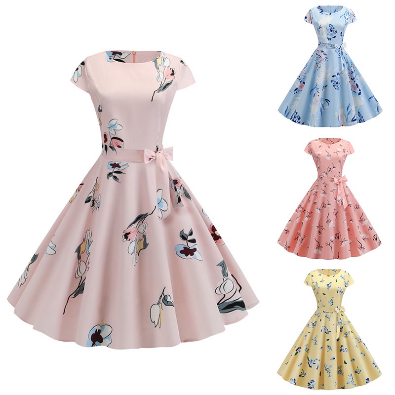 Vestido De Festa Vintage De Bolinha De Manga Curta Midi Linha A Rockabilly