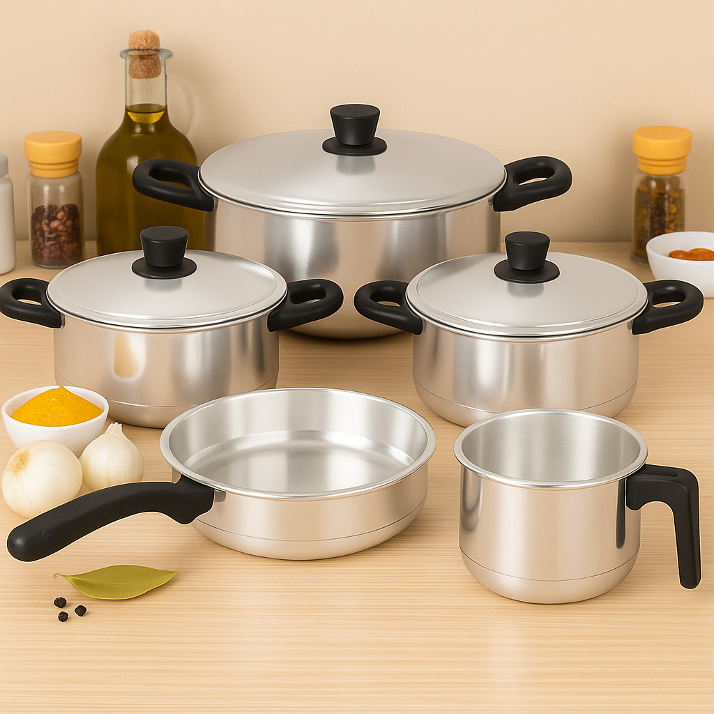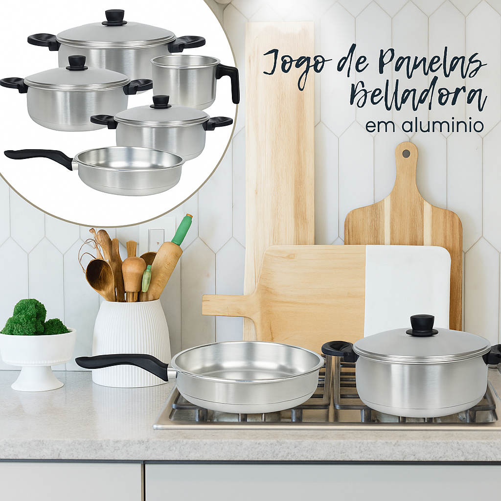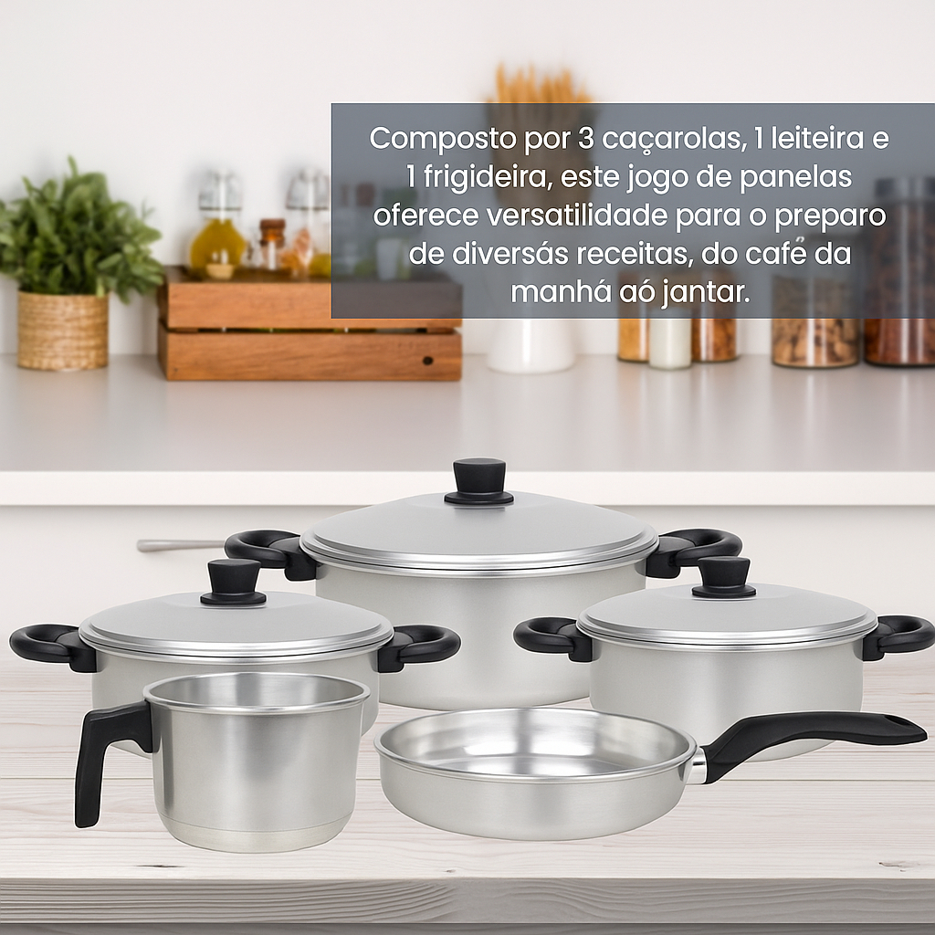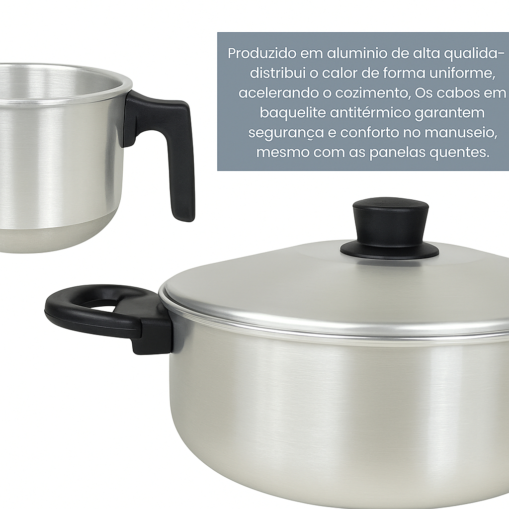 OFERTA/Jogo de panelas 5 peças alumínio Polido com frigideira e caneco