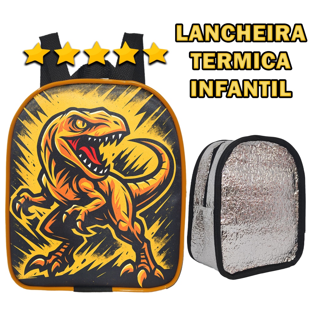 Kit Escolar Infantil Mochila Dinossauro Super Raptor de Rodinha, Estojo Simples 1 e Lancheira Térmica
