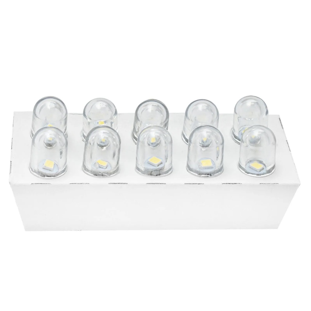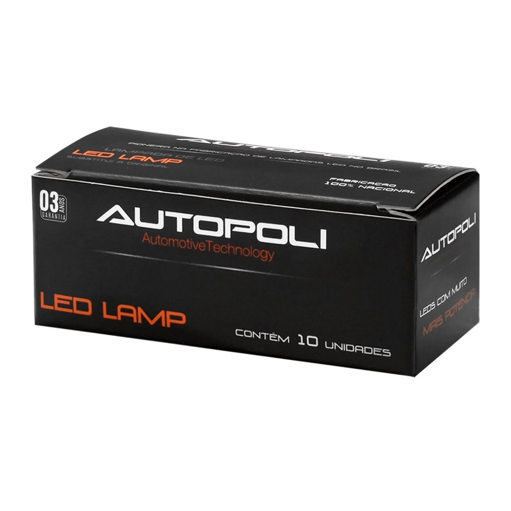 Kit 10 unid. Lâmpada Led T10 Esmagada Pingão Branco 12v 0,9w Autopoli AP828 Painel Lanterna Placa