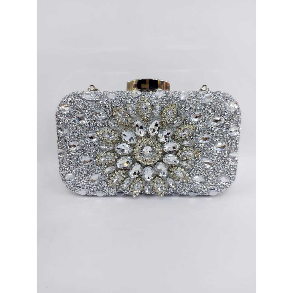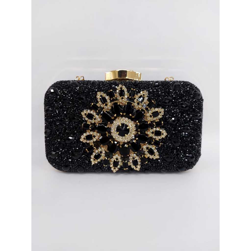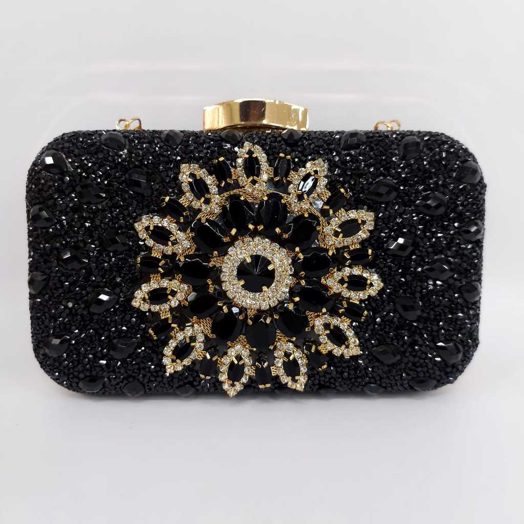 Bolsa Clutch de Strass e Pedrinhas Brilhantes Flor