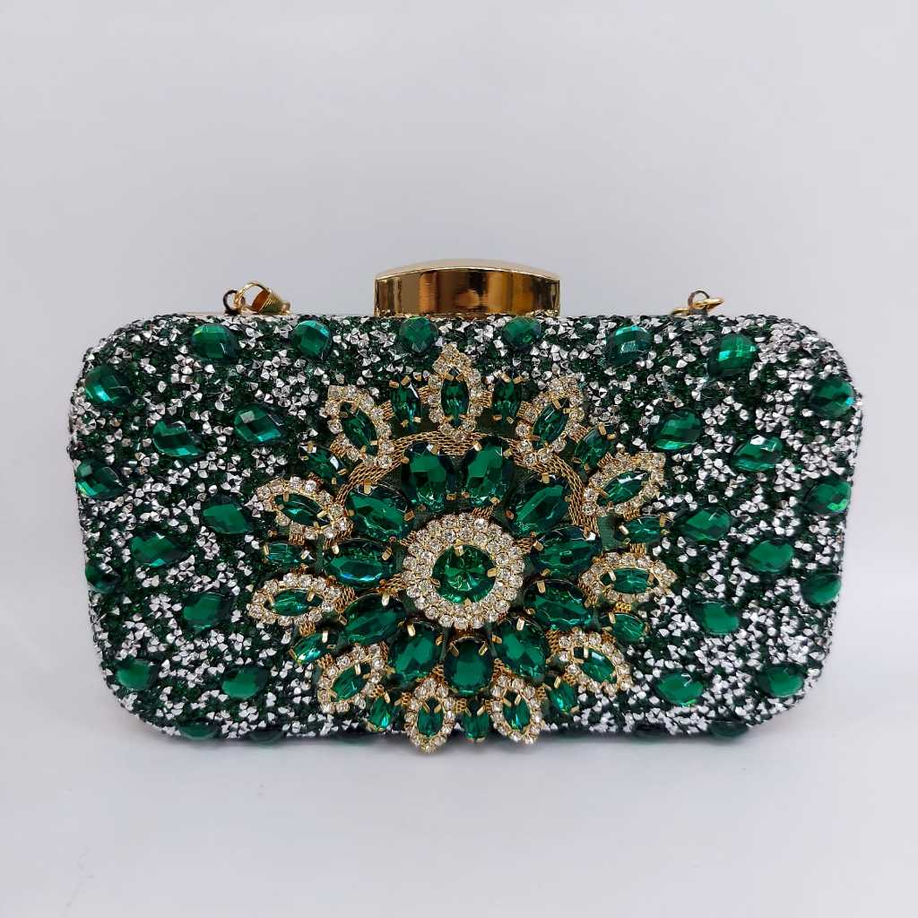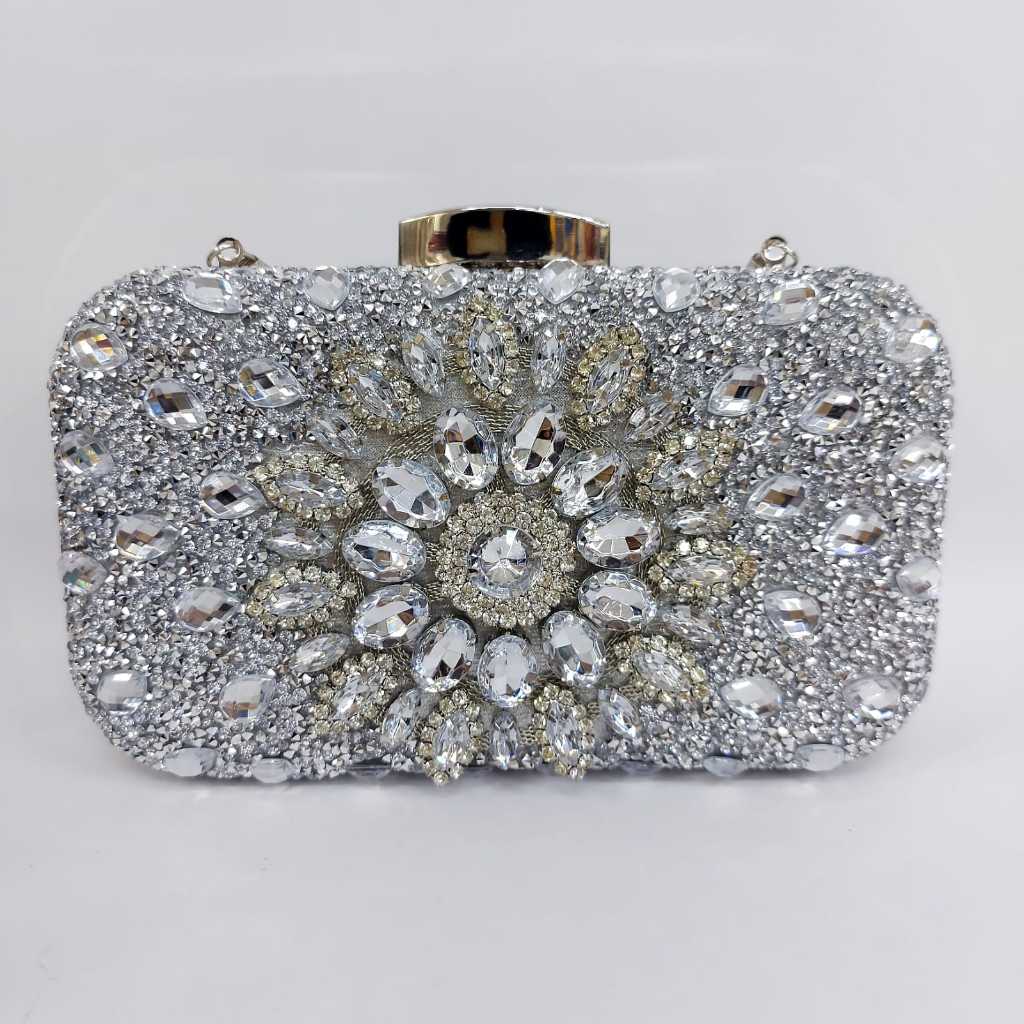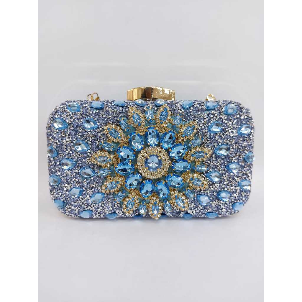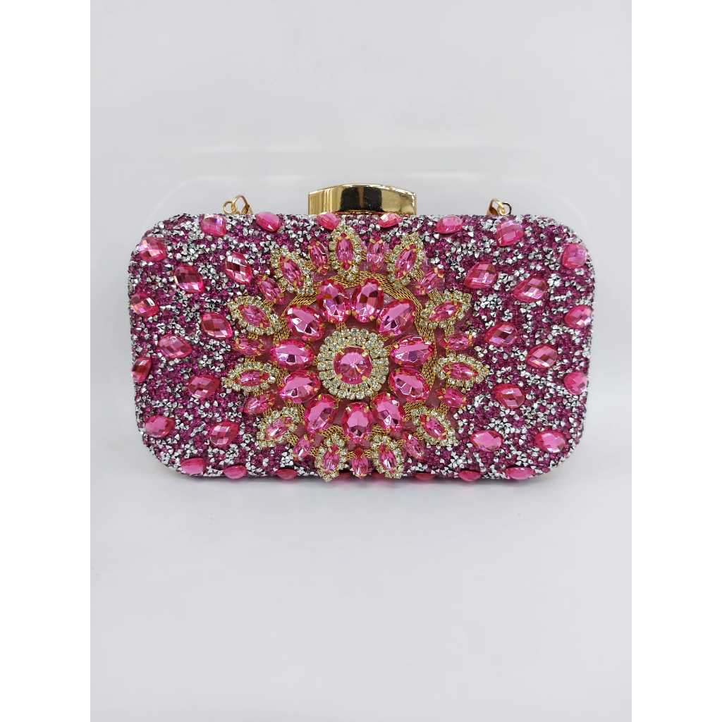 Bolsa Clutch de Strass e Pedrinhas Brilhantes Flor