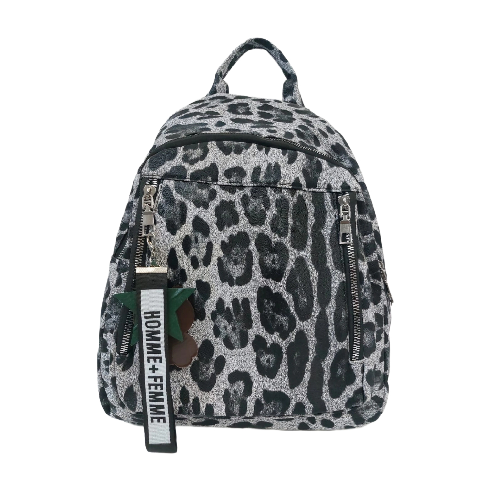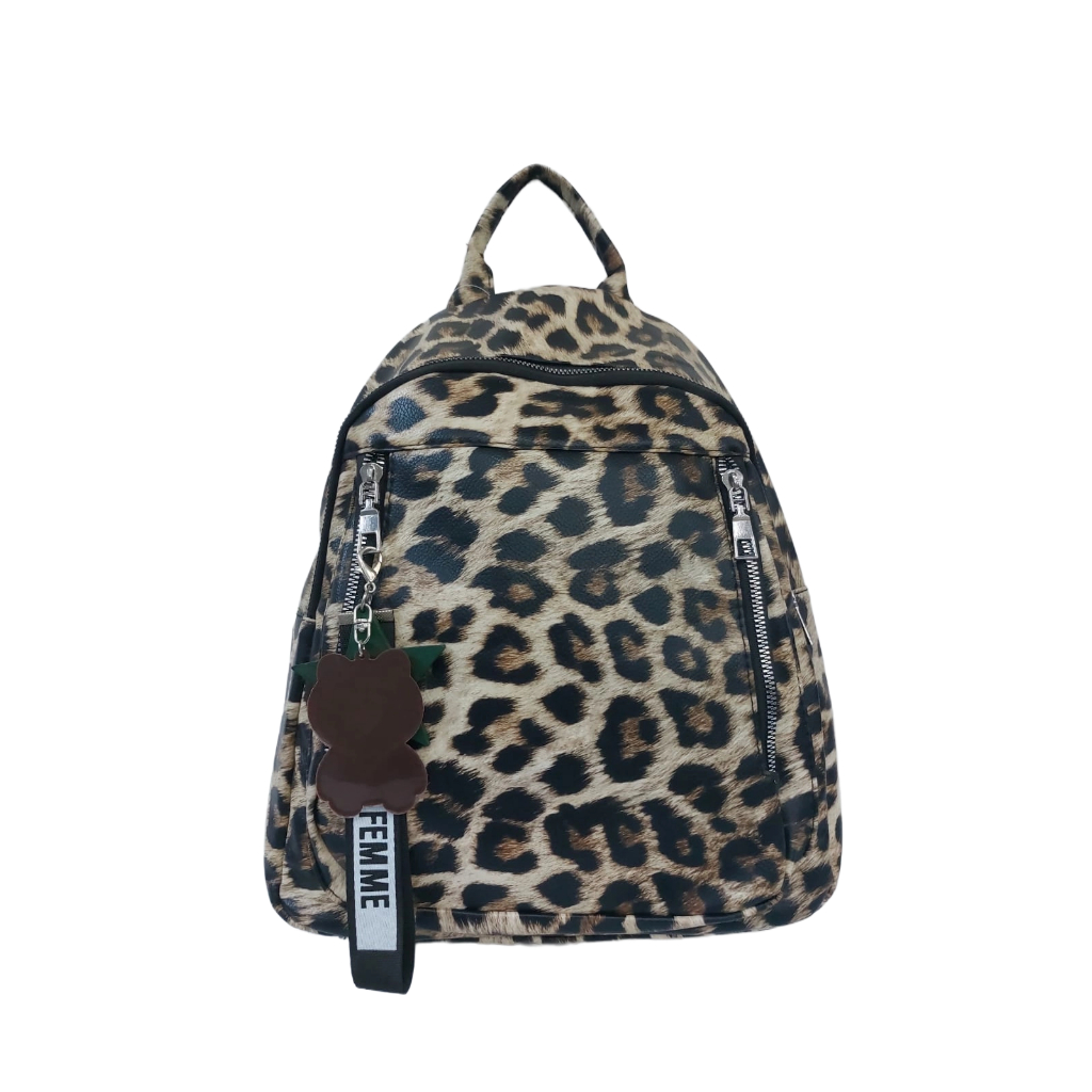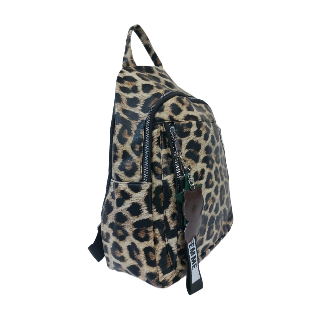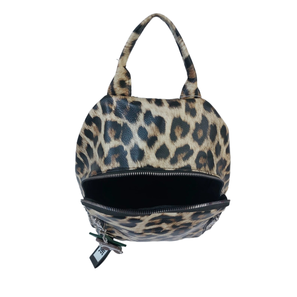 Mochila Couro Sintético Estampa Oncinha Leopardo