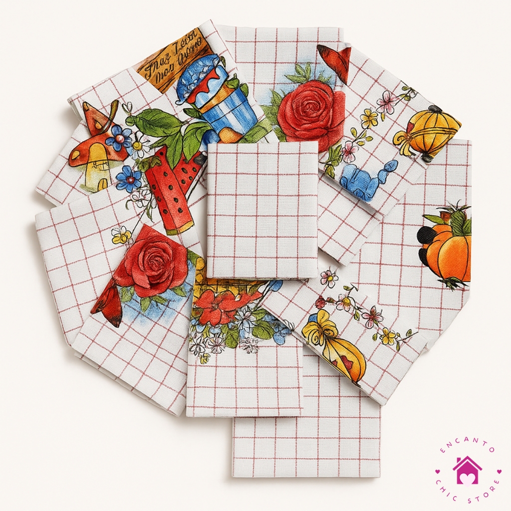 Kit 10 Panos De Prato Copa Cozinha 43x67 Grande Xadrez Toalha de Copa Estampado