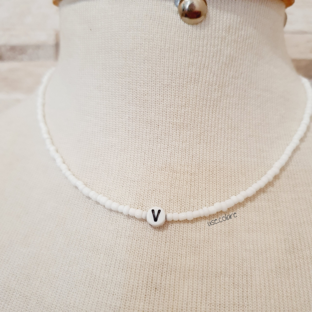 Colar de miçanga branco com letra inicial personalizada