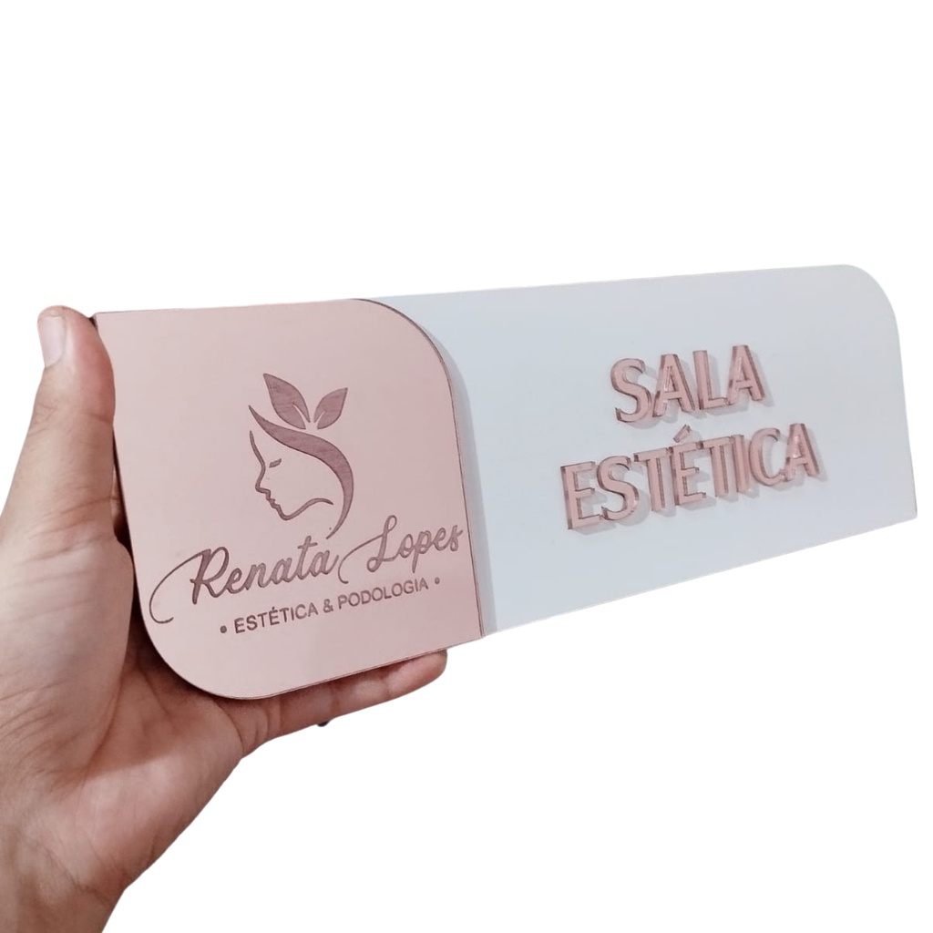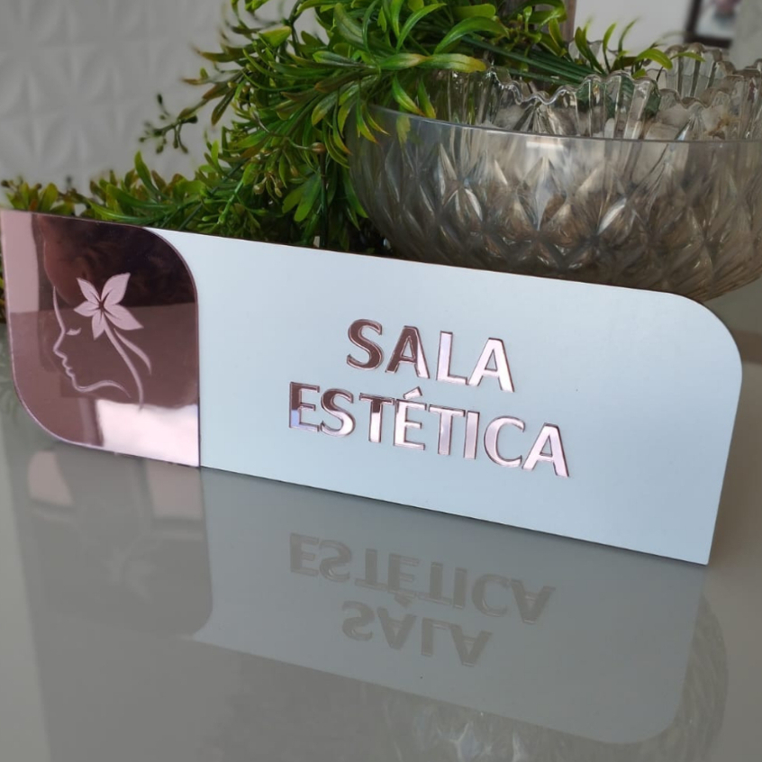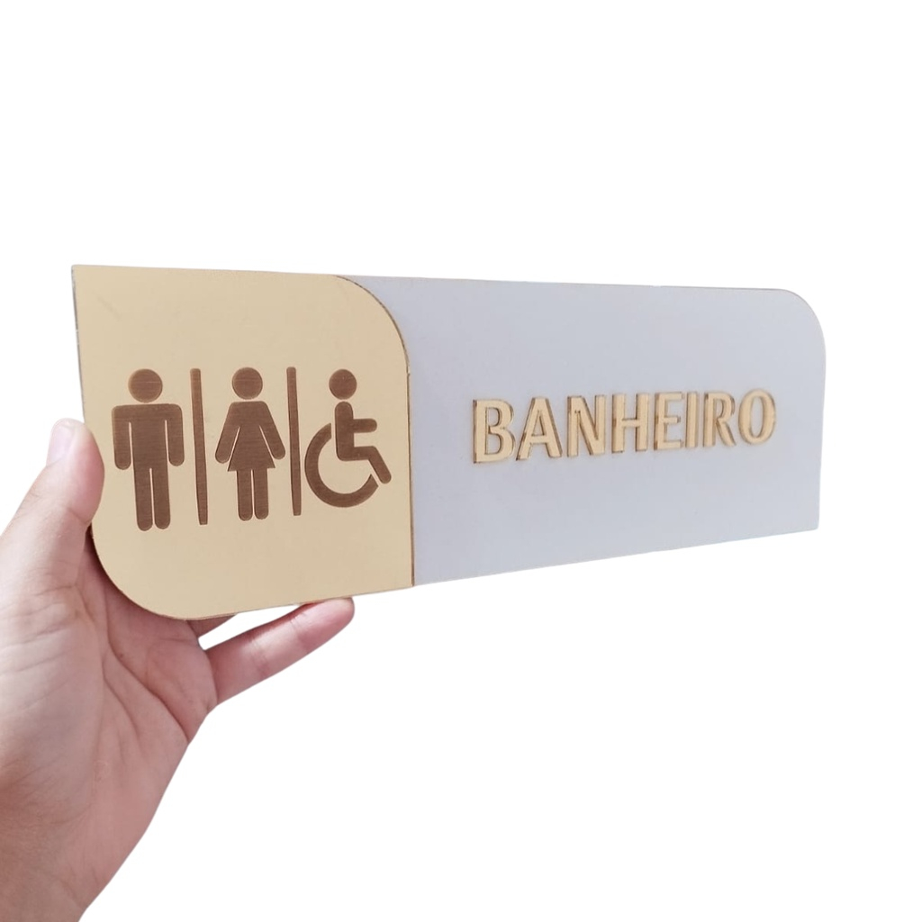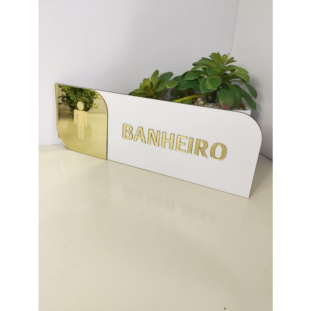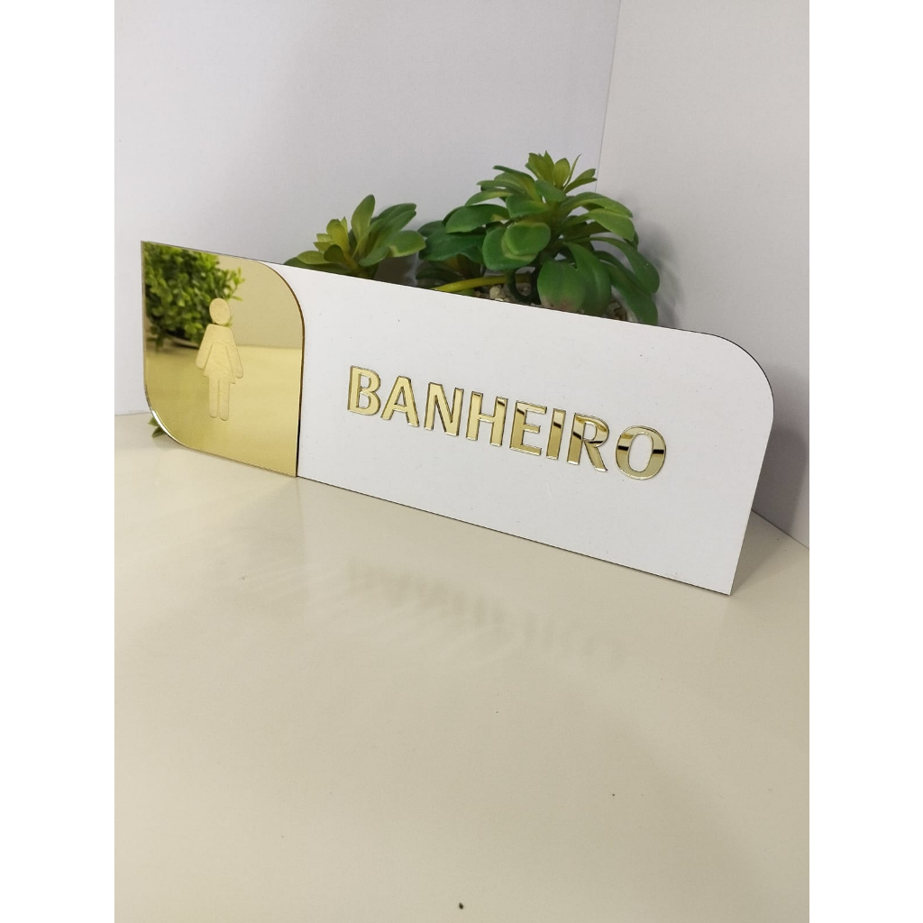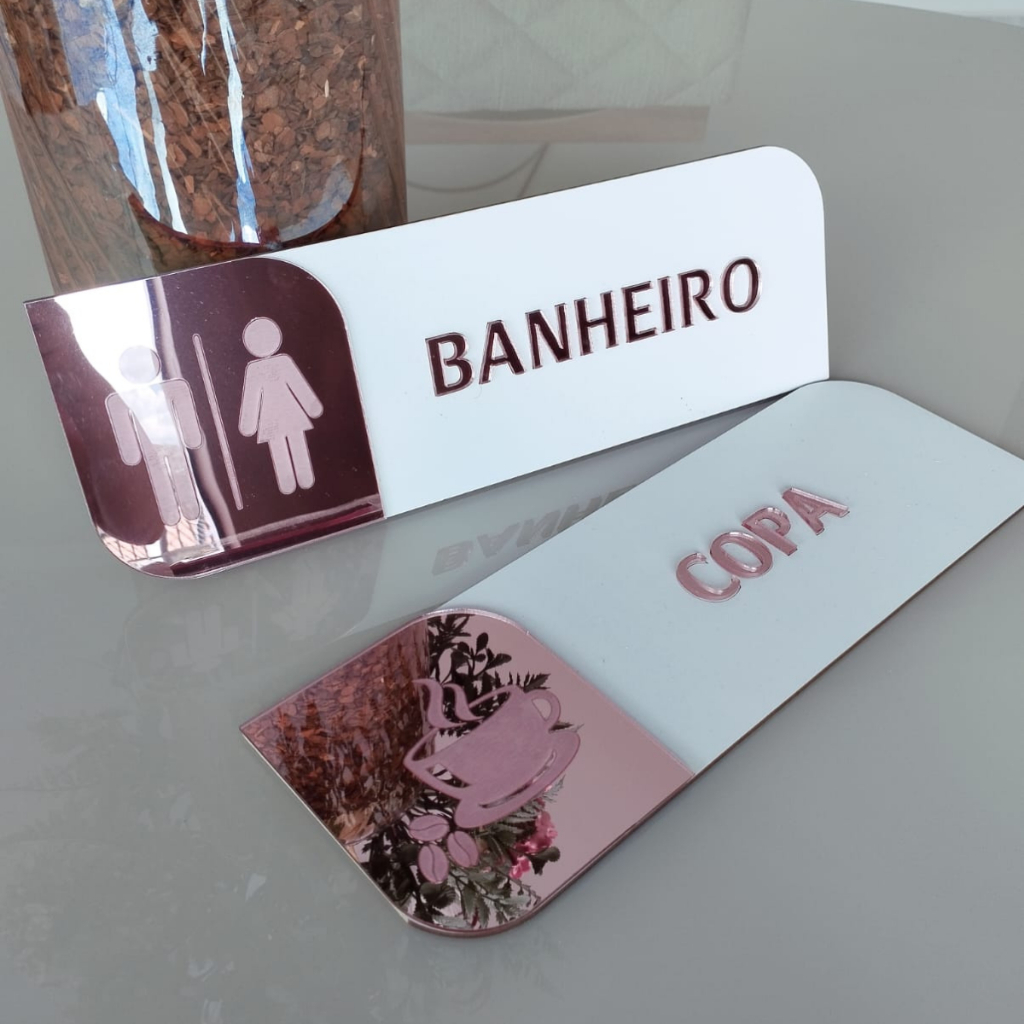 Placa Sinalização de Porta Salas Setores Banheiro MDF com Acrilico espelhado Personalizada Linda Banheiro Logo