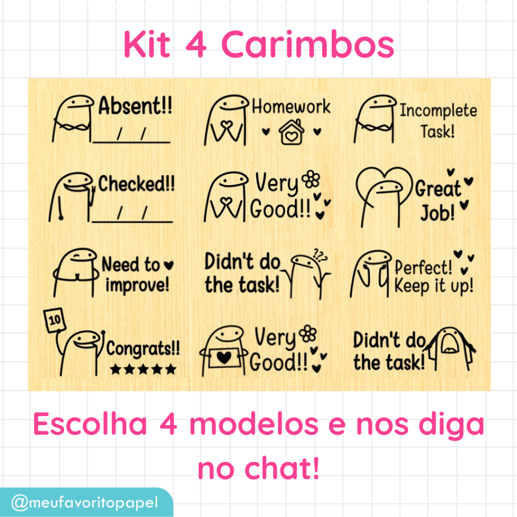 Carimbo Pedagógico INGLÊS Flork Meme - Carimbo Escolar Infantil para Professores 4cm