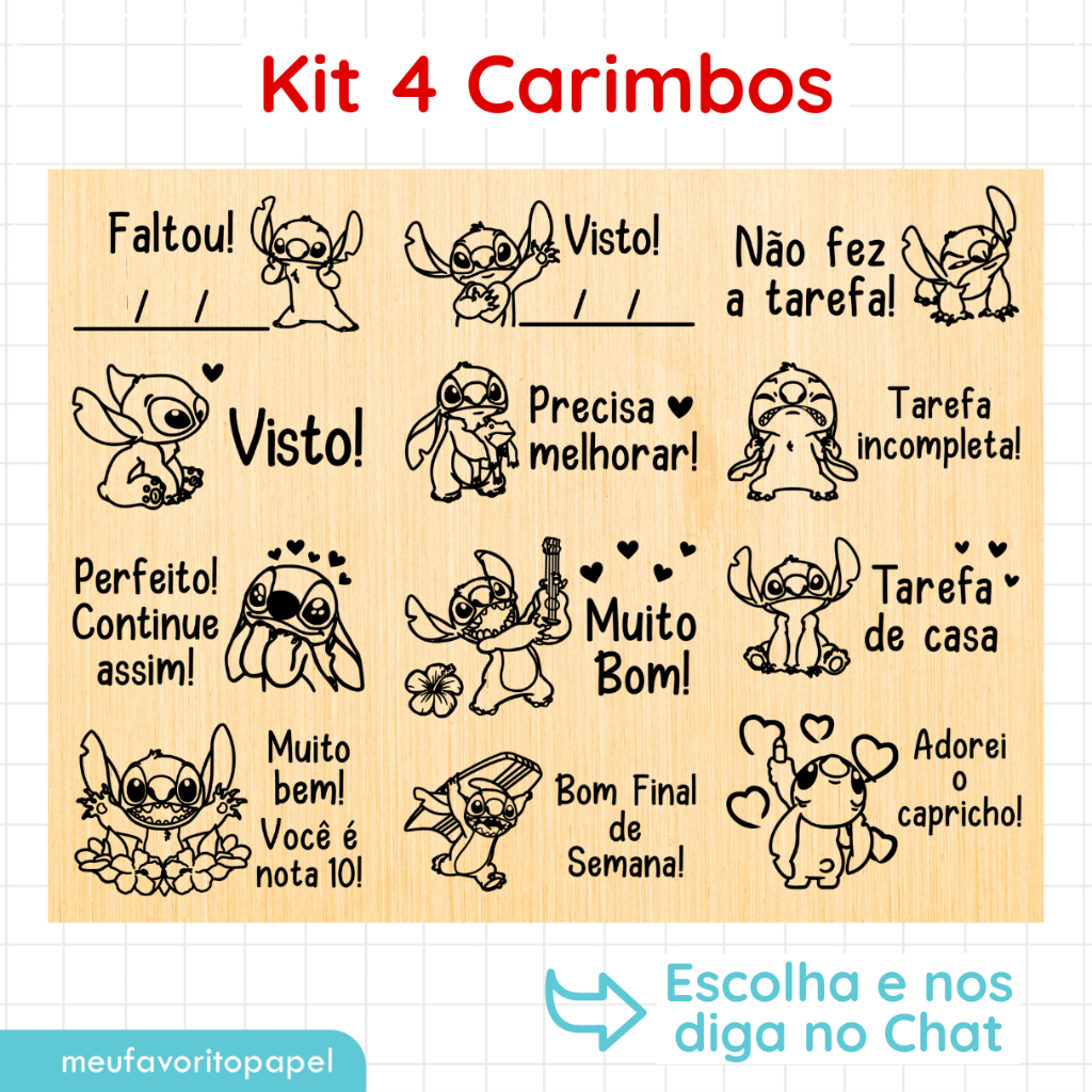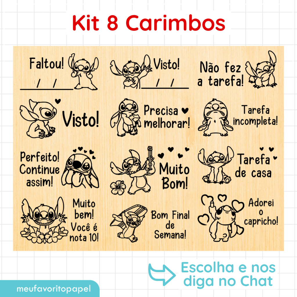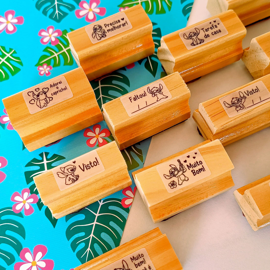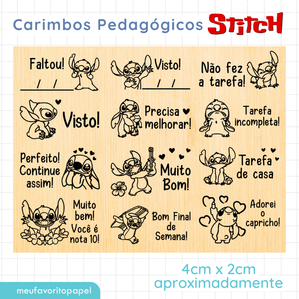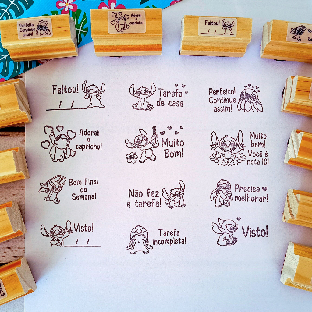 Kit Carimbo Pedagógico Stitch - 4x2cm Carimbo Escolar Infantil para Professores Incentivo Escolar
