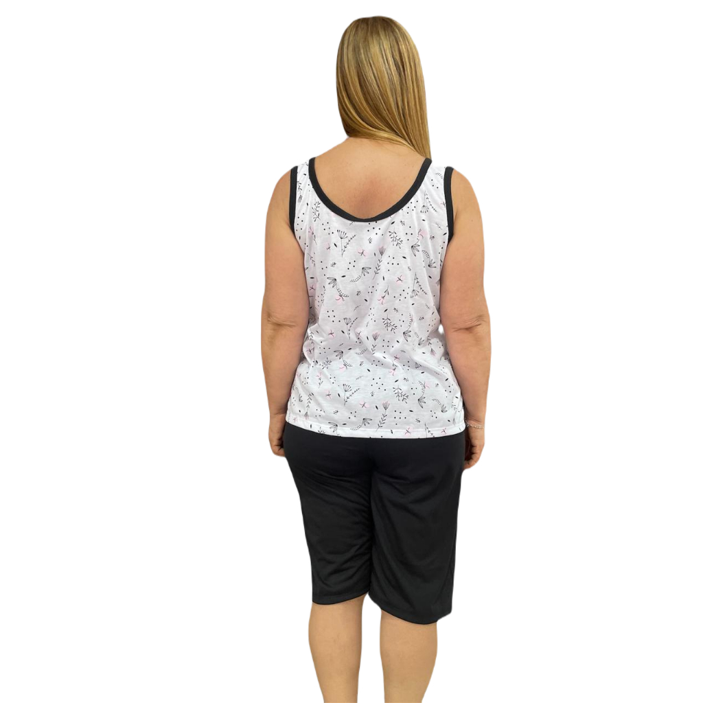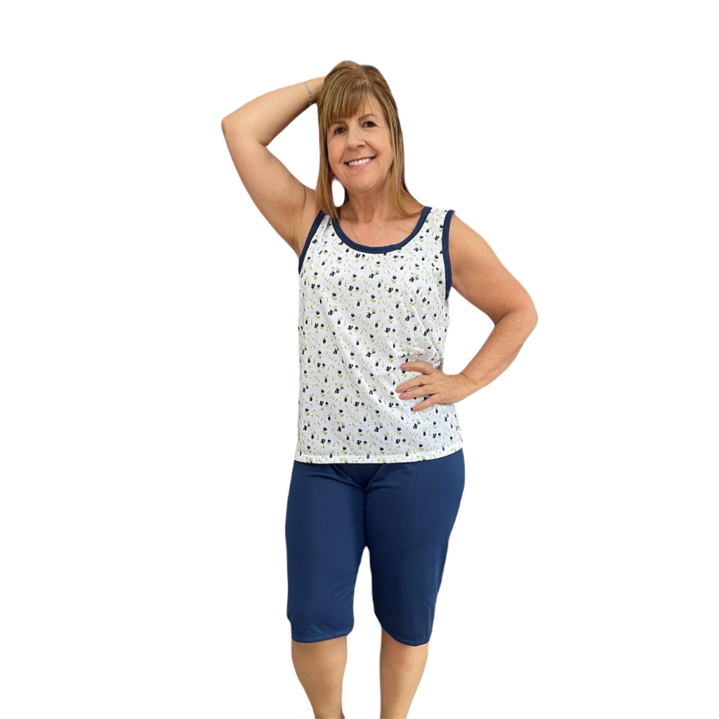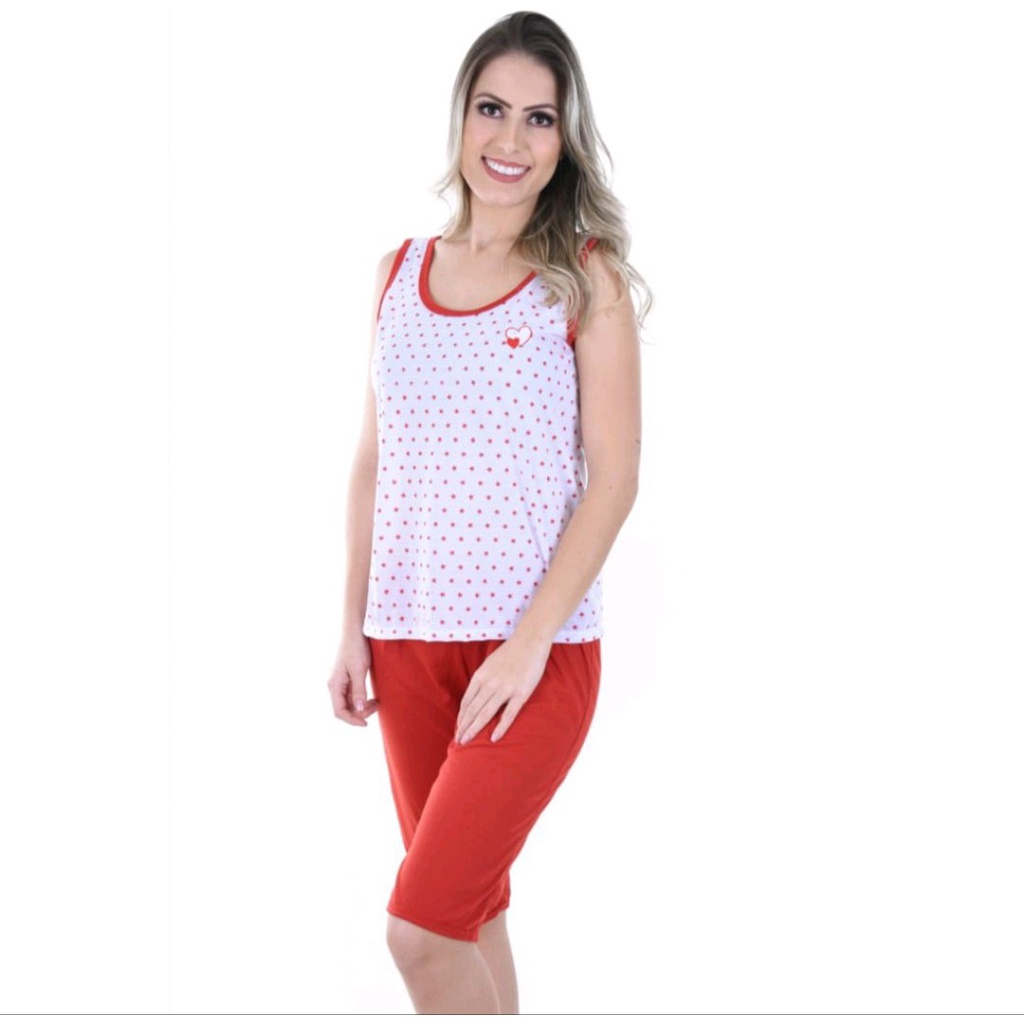 Pijama Conjunto Feminino Camiseta Pescador curto Verão Adulto até o joelho malha