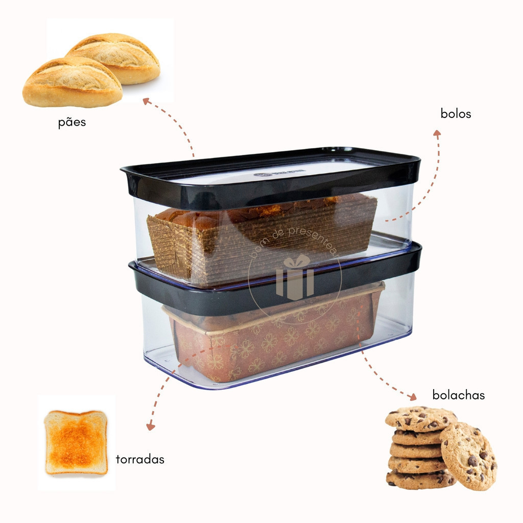 Pote Porta Bolo Pão Biscoito Torradas Bolachas Acrílico Hermético com Tampa