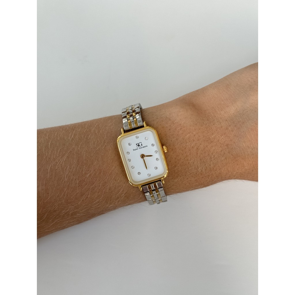 Relógio Feminino Prata Dourado Quadrado Saint Germain Square Madison Diamond Bicolor Gold