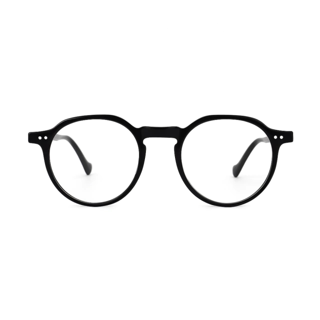 Óculos de Grau Redondo Gaia Preto Armação Premium Unissex Retrô Clássico Leve Confortável