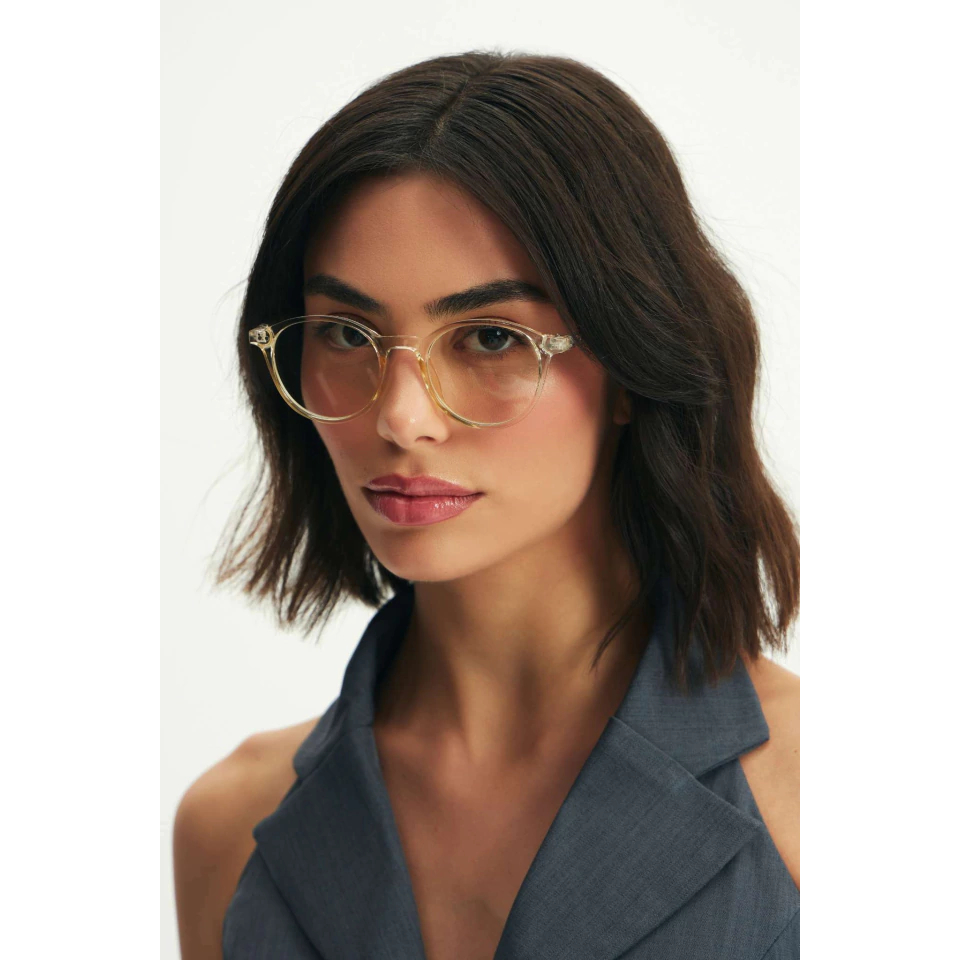Óculos de Grau Redondo Lazlo Champanhe Armação Premium Retrô Unissex Confortável Elegante