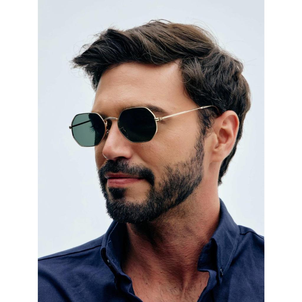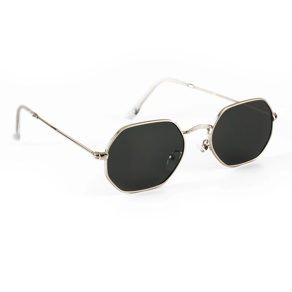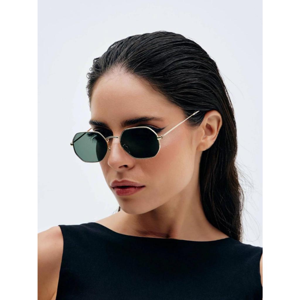 Óculos de Sol Union Black Gold Geométrico Armação Dourada Lentes Pretas UV400