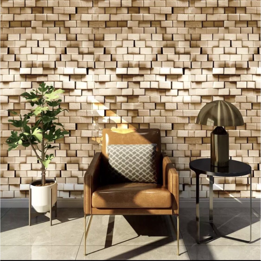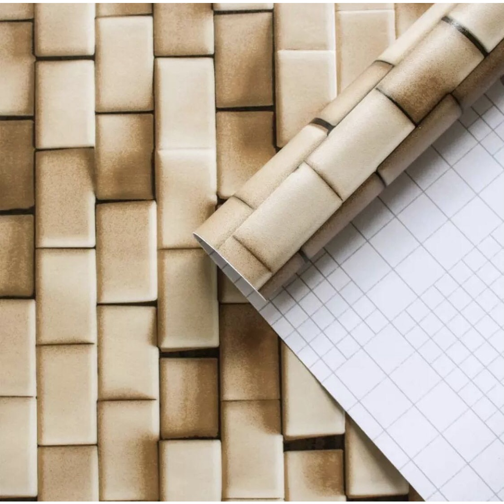 Papel de Parede Tijolos Bege 3D 5 METROS x 45CM Adesivo Autocolante para Sala, Quarto