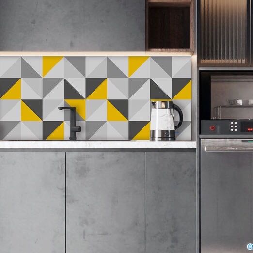 Papel de Parede Geometrico Preto Cinza Amarelo 5 METROS x 45CM Adesivo Autocolante para Sala, Quarto