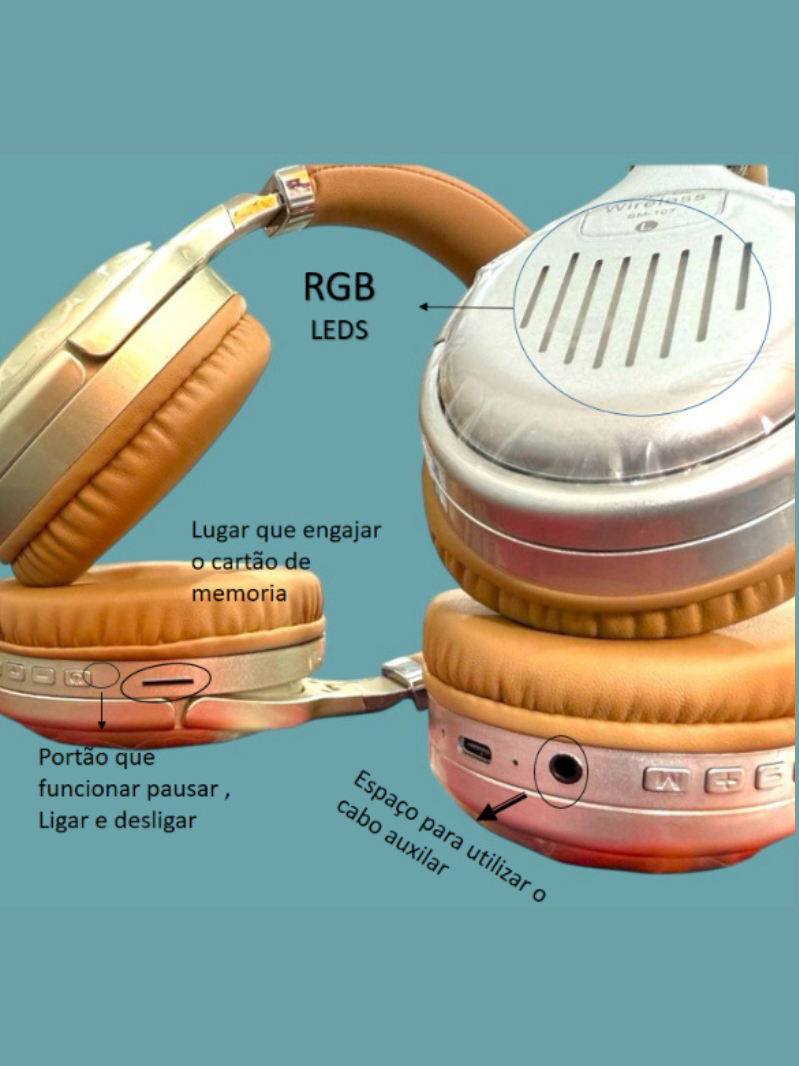 Fone De Ouvido Anti-ruidos, Headphone Bluetooth Sem Fio Micro SD FM BM107 Alta Qualidade