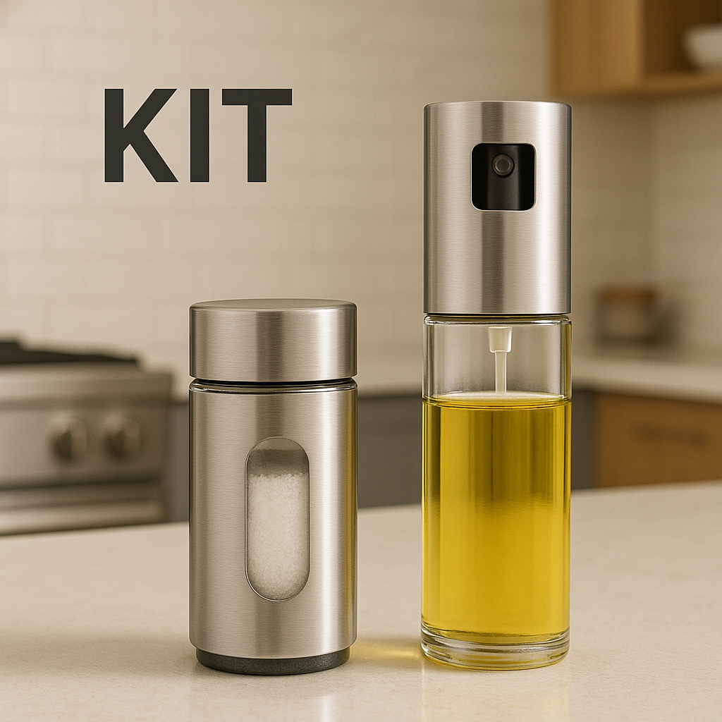 Kit 1 Porta Saleiro Pimenteiro e 1 Porta Azeite Galheteiro 100ml
