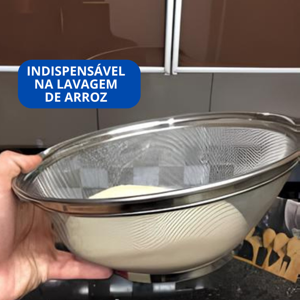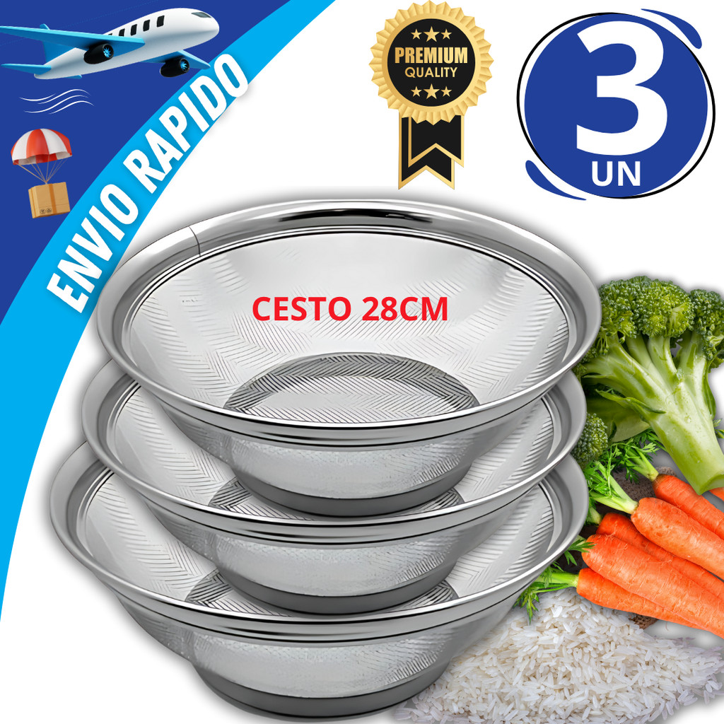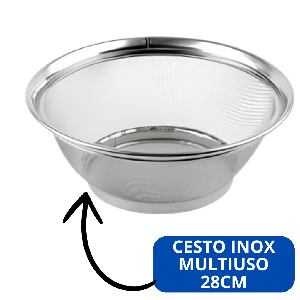 Kit 5 Cesto Inox 28cm Para Lavar e Cozinhar a Vapor Arroz Legumes Frutas Massas Escorrer massas e arroz