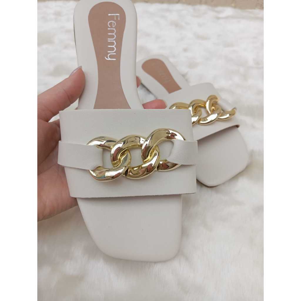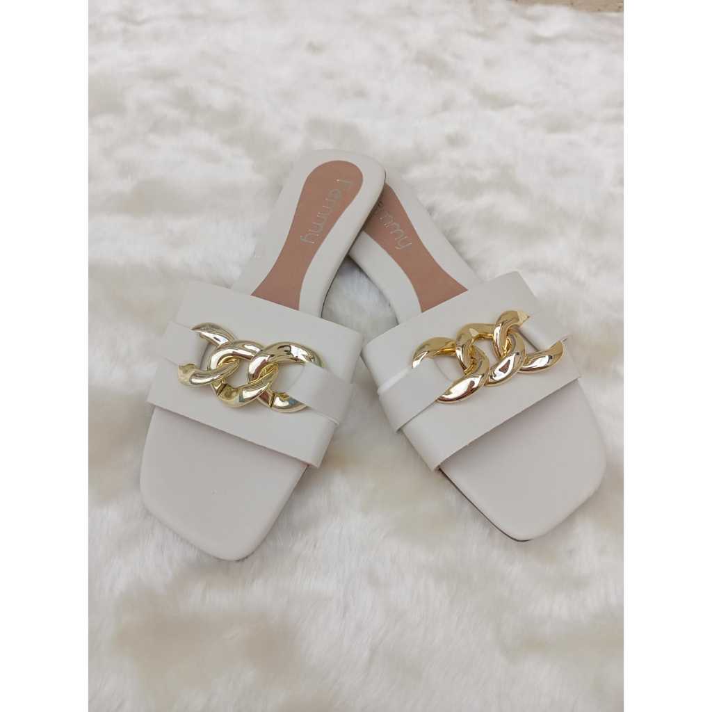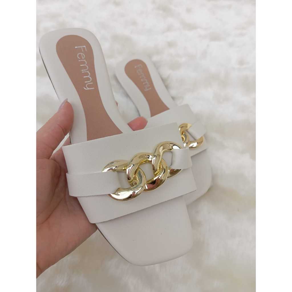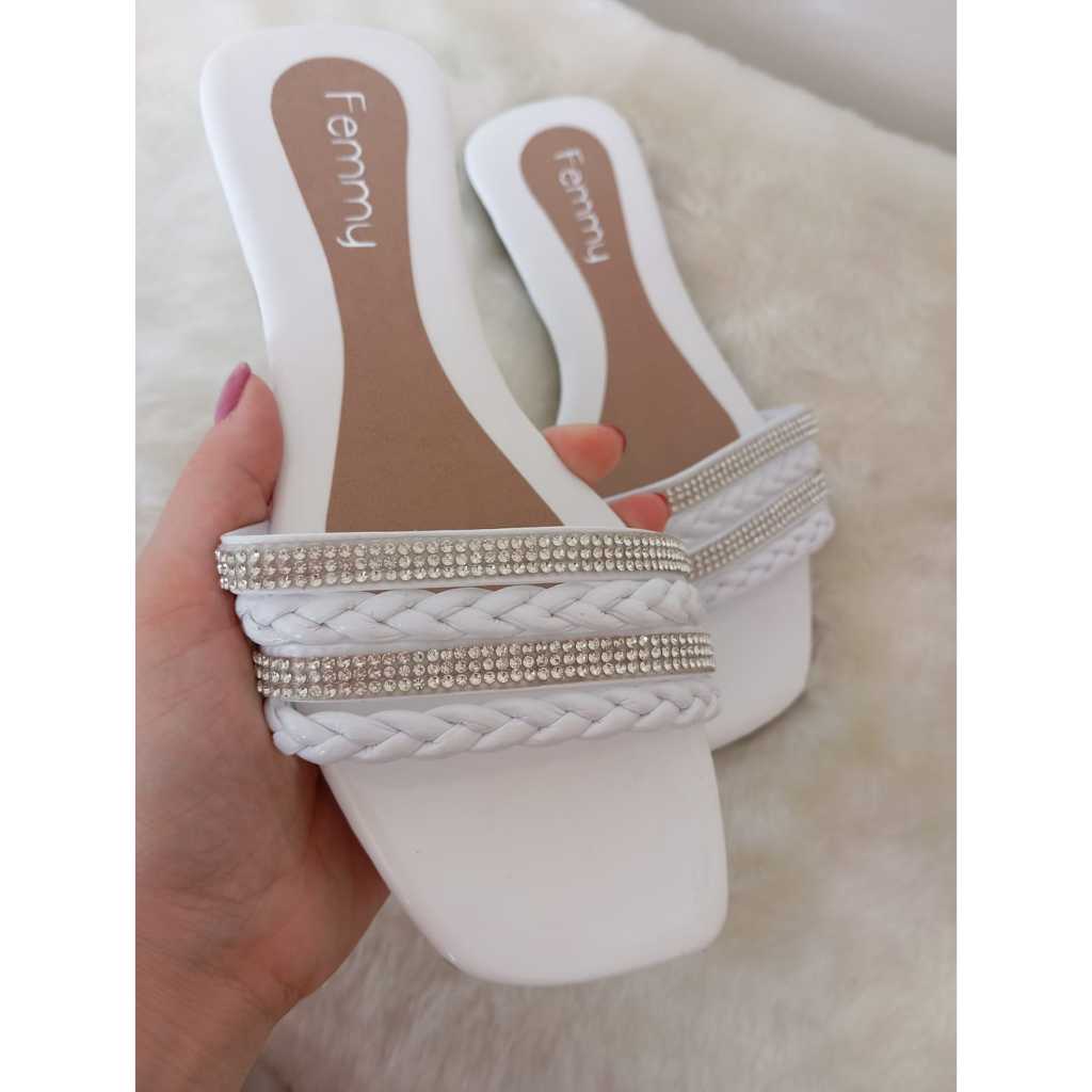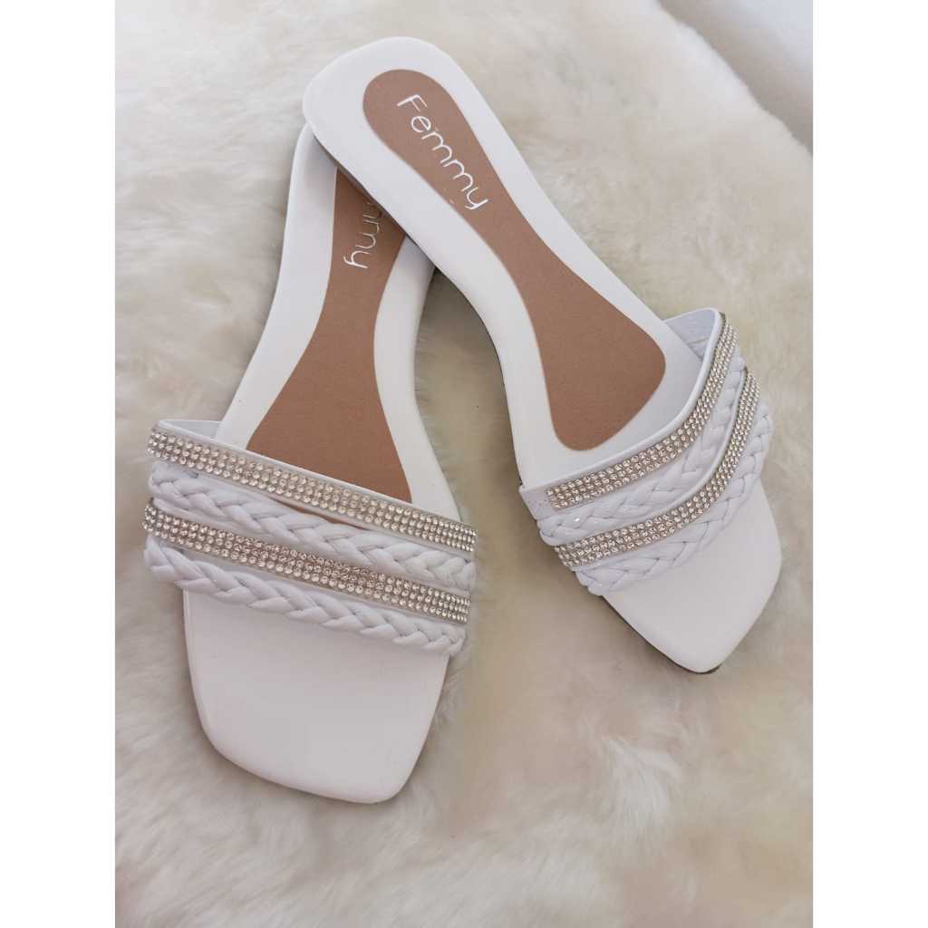 Kit com 2 rasteirinhas Brancas, com acessório e com strass e trança - Solado antiderrapante, Rasteira confortável