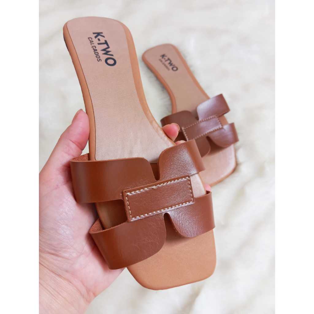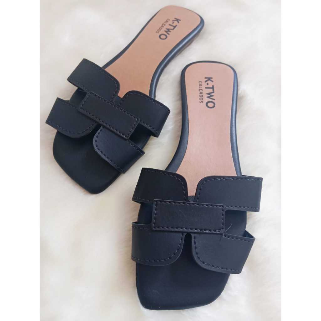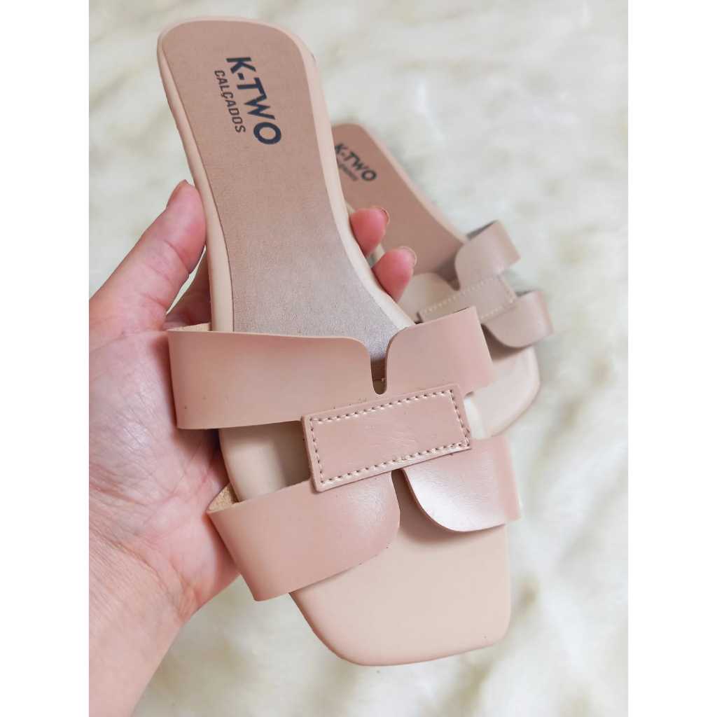 Kit com 2 Sandálias Rasteirinhas, Rasteira Flat Mod. H, Confortável, solado antiderrapante, várias cores, K-two Calçados