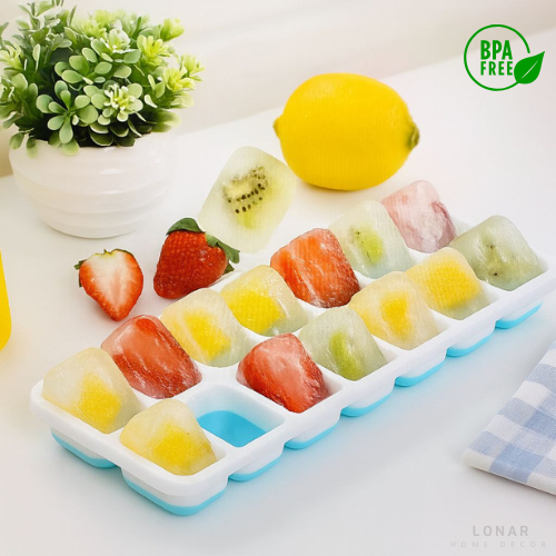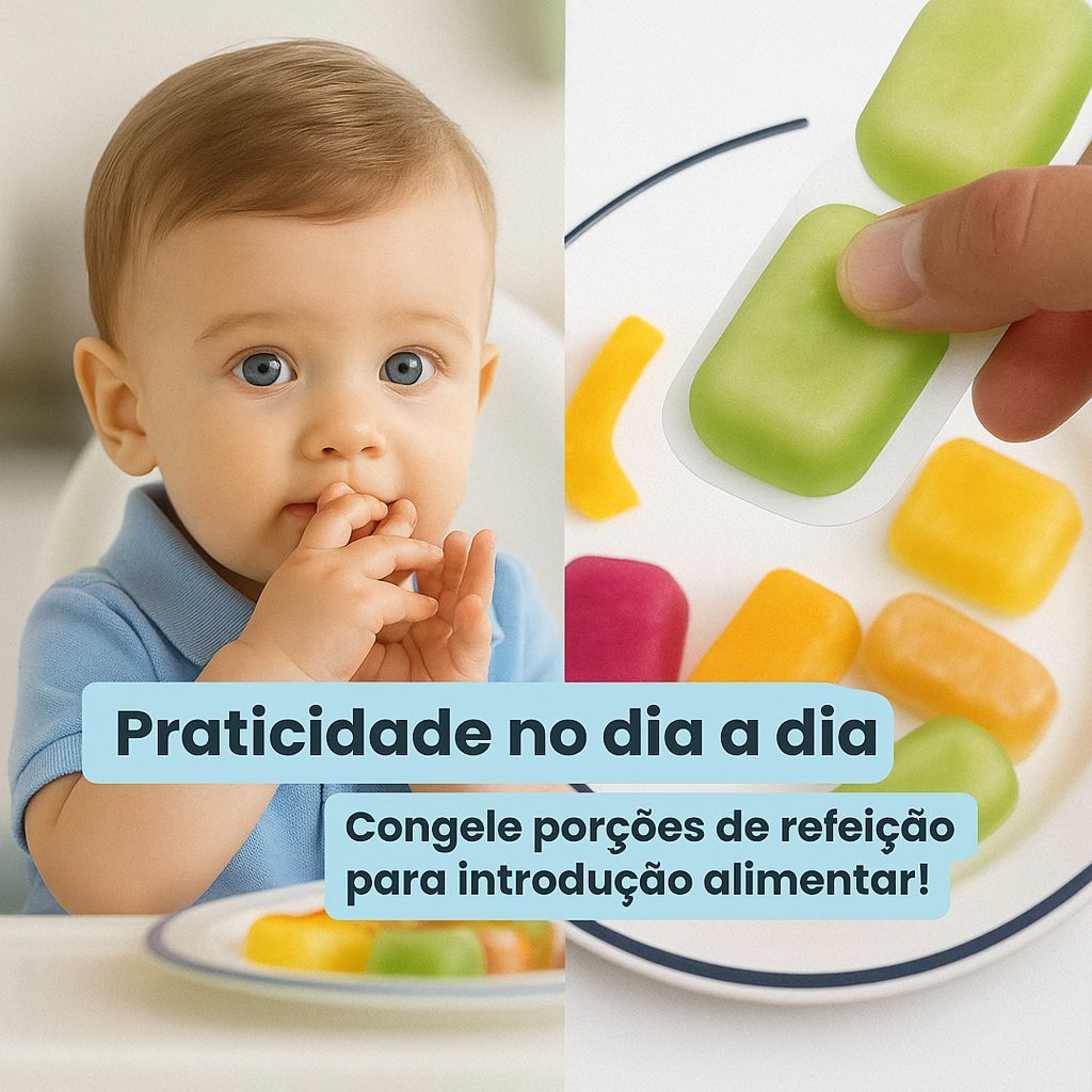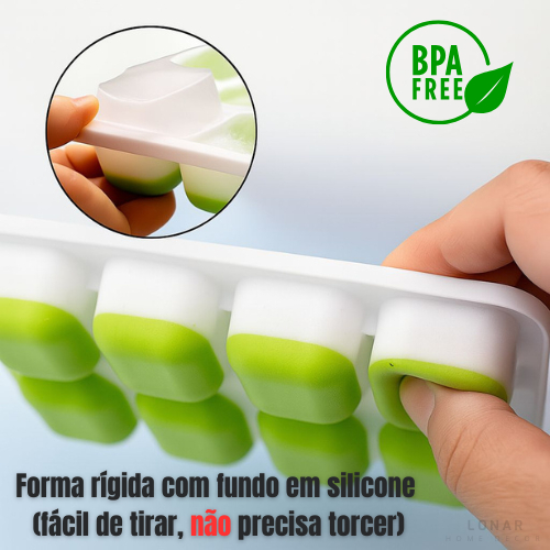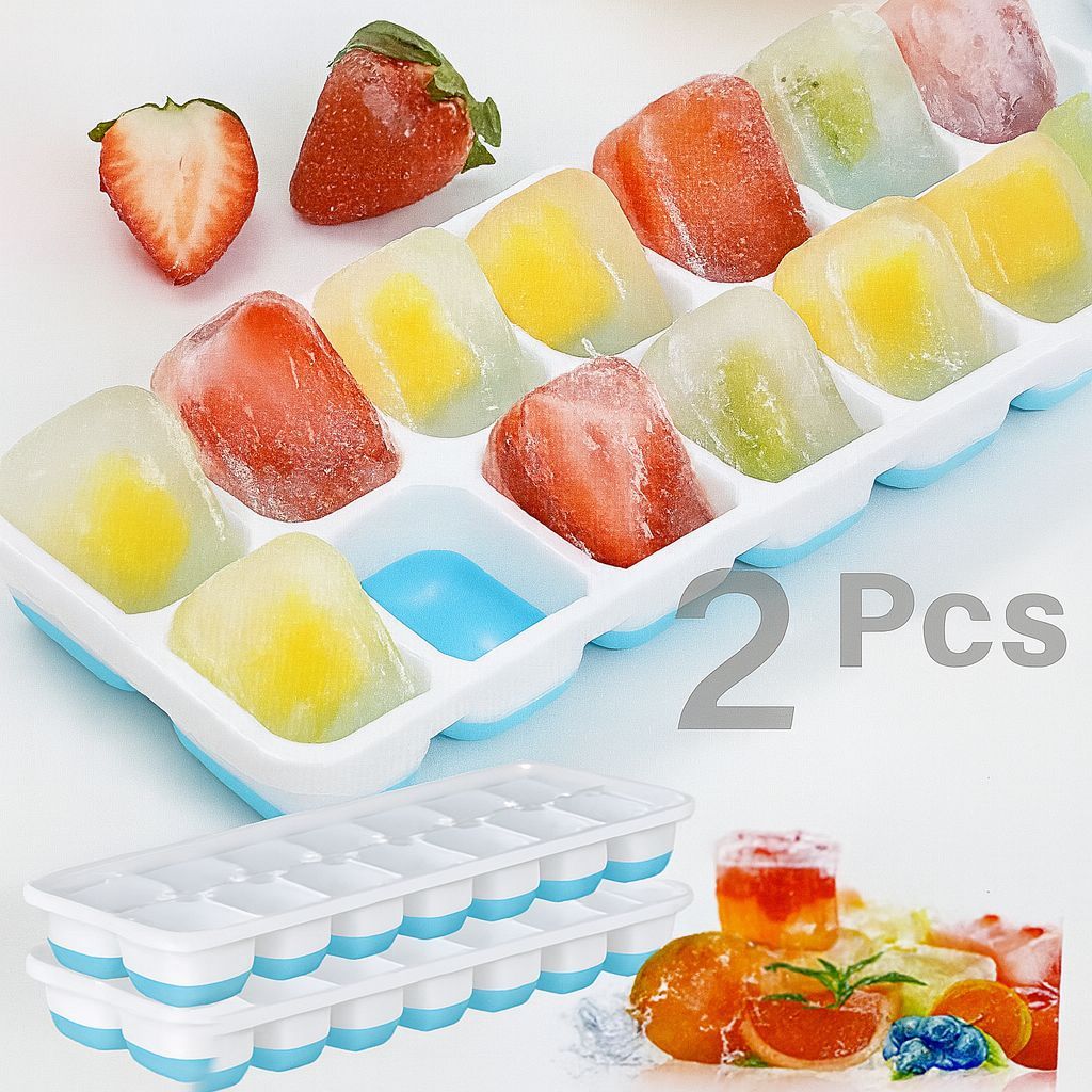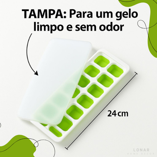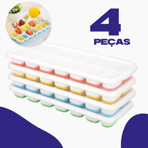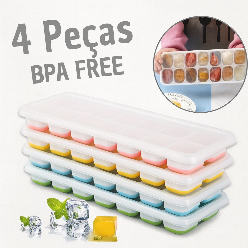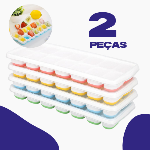 Kit 2/4 Formas de Gelo Silicone Com Tampa Rígida Flexível Fundo Retangular 14 Cubos Multiuso