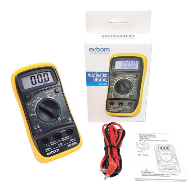 Multímetro digital com Iluminação bipe bateria ponta de teste EXBOM MD-200L