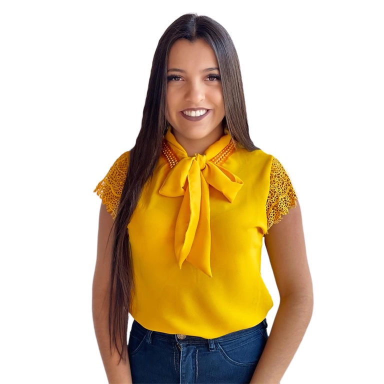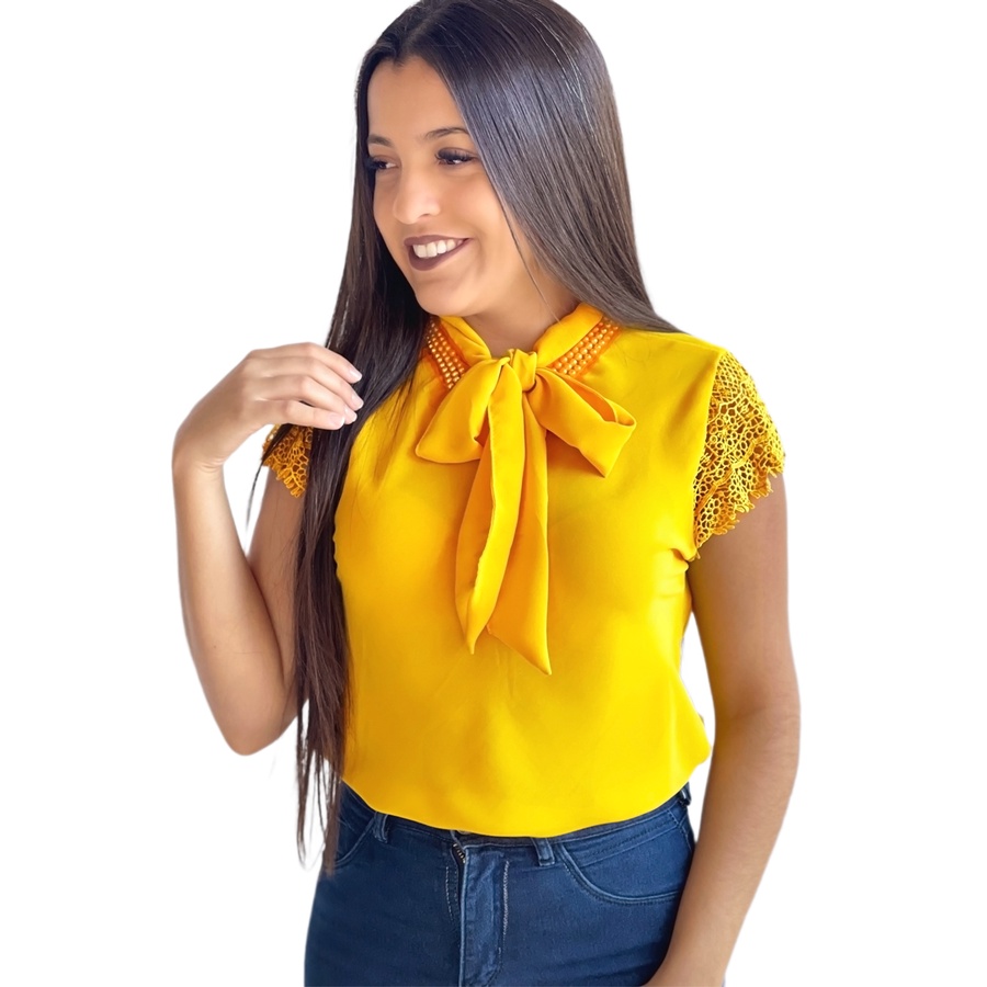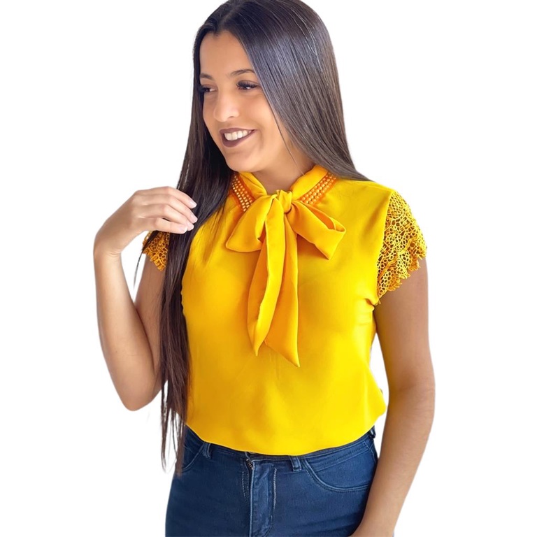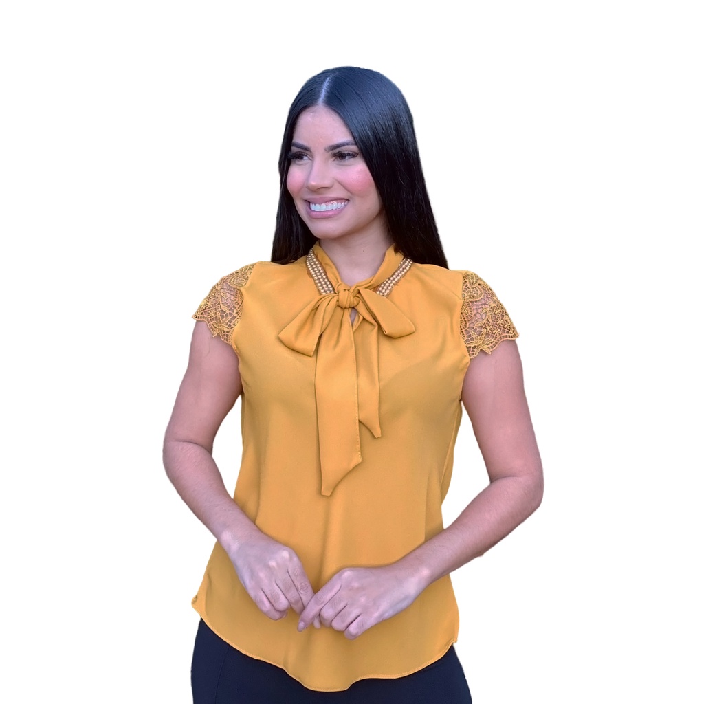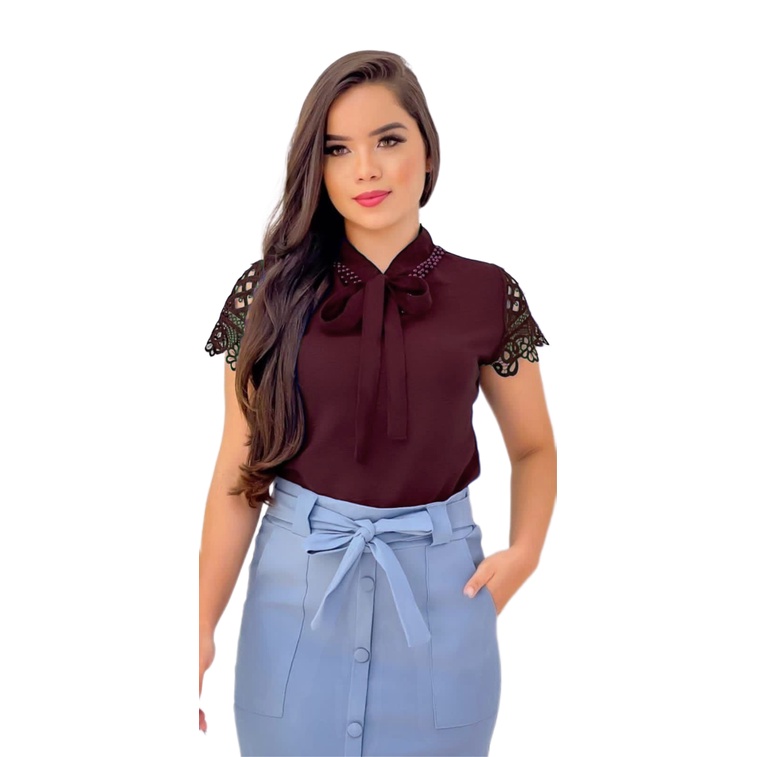 Blusa Feminina Manga Curta Gola Laco Social Moda Evangelica Executiva
