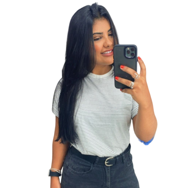 T-shirt Listrada Basic Gola Normal 100% Algodão