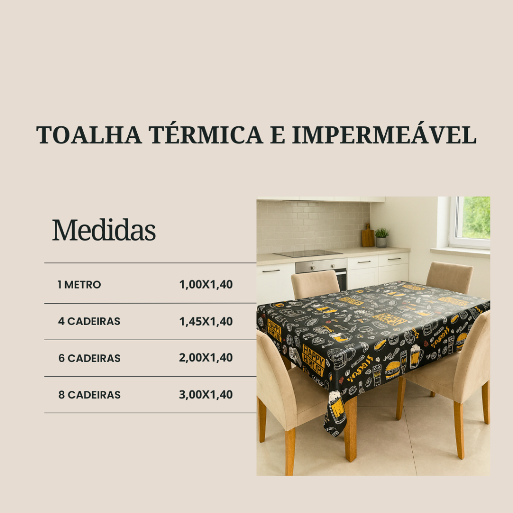 Toalha De Mesa Impermeável Em PVC Térmica 4 Tamanhos Disponíveis Estampas Lindas e Variadas