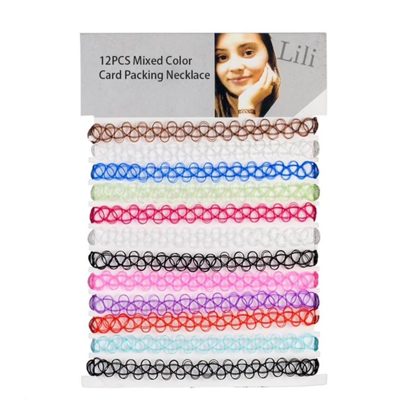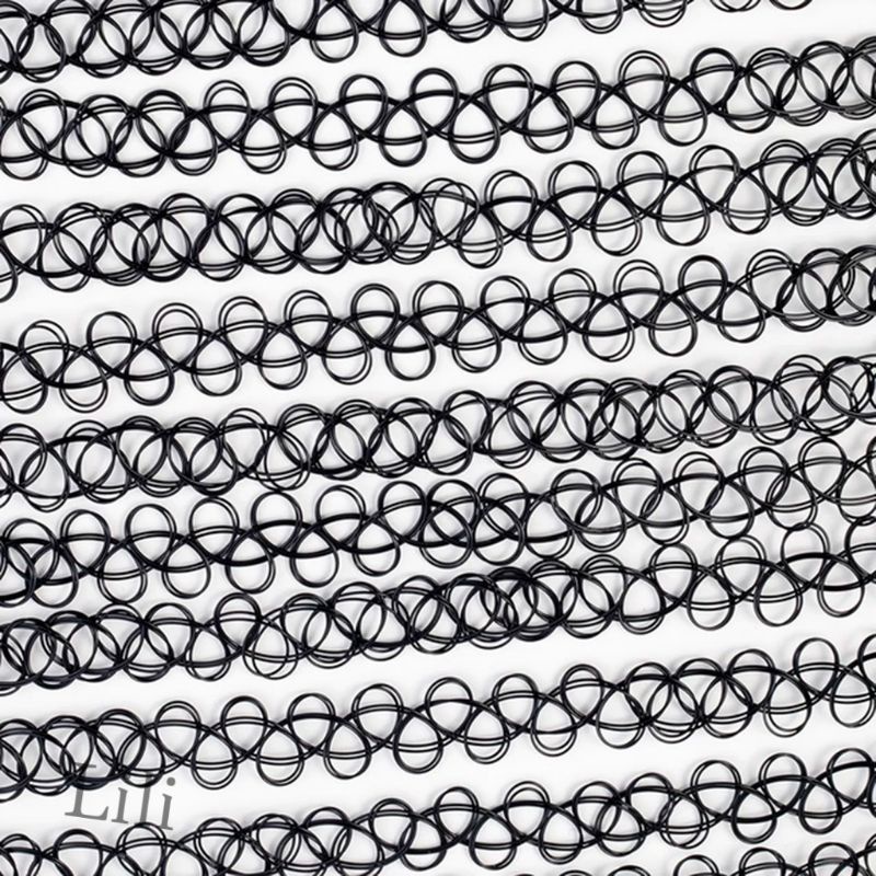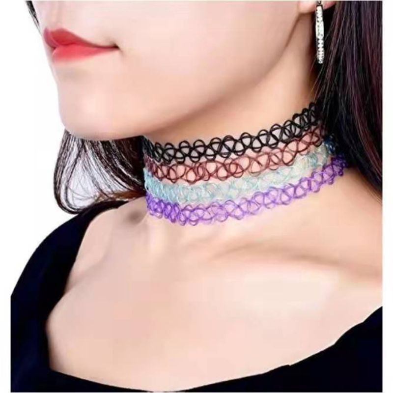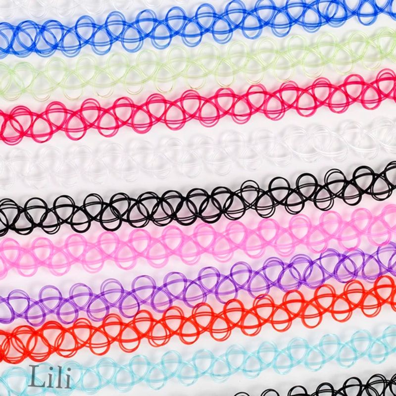Gargantilha Colar Chocker tipo de nylon preta colorido