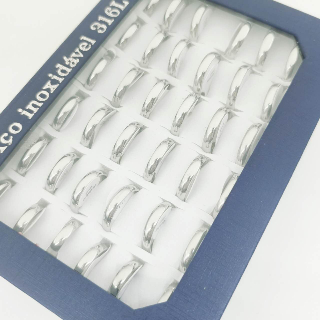 Kit C/36 Aliança 4mm Prata Aço Inoxidável Caixa Atacado