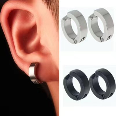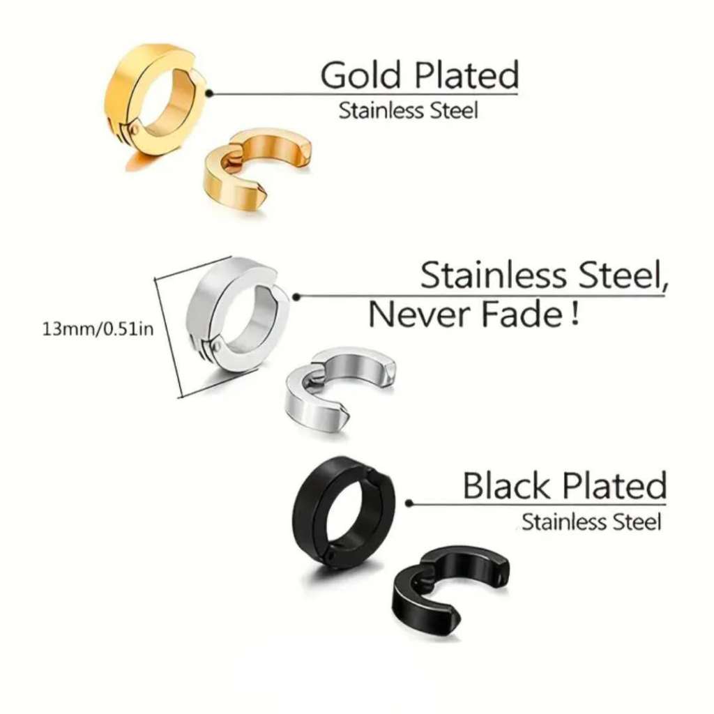 Brinco Pressão Argola Par Aço inox Masculino unissex - Não Precisa Furar Prateado e Preto